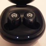 The provided battery case has a micro-usb port at the rear to charge the case which when fully charged allows the earpieces to recharge 3 times before needing to recharge the case. I found the battery did fully charge the earpieces twice and provided a partial 3rd charge that lasted roughly 2/3rds as long. In playback, the earpieces lasted between 2.5 and 3 hours per charge which is better than average for an earbud this size. The case uses magnetic closures to hold the earpieces in proper alignment to charge and a series of 3 LEDs on the front lip of the case show charge status. The case lid also uses a magnetic closure to prevent accidental loss of the buds when not in use.