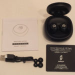 The MTW5 is Simgot’s latest Bluetooth in-ear and comes packed in a small press-board box with photo of the buds on the front along with model number and basic information and full details of the product on the reverse. Inside the box, the charging case rests on a plastic shelf with the charging cable, tips, and warranty cards hiding underneath.