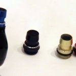 Ok so it sounds like this earphone has some potential, but also some failings. Luckily, a happy accident may provide the answer to some of those failings. While putting new tips on to try and see if tip rolling helped, I found that one nozzle seemed loose. With a little more fiddling, I found that the nozzles unscrewed to reveal the sound bores. Ok so maybe I could adjust by adding a filter to the sound bores was my first thought. My Second thought was, “I wonder what the chances are that the DMG/M6 or LZ-A6 filters will fit?” Well guess what, all of those filters do fit. So we have 3 filters from the M6 to try, the Vented DMG Filter, and 6 filters from the LZ kit we can try out. Some astute person just said “6, I thought there were 9 in the LZ kit”. Again, correct, but with the sound bores protruding into the base of the filter from the D2B4, the dark blue, violet, and silver filters with their narrower bores obstruct one of the sound bores so they cannot be used. (See Below).