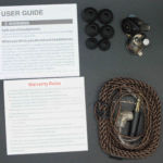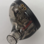 The KB06 uses a 2 piece shell with the inner shell and nozzle made of smoked transparent plastic and the outer being an aluminum alloy. The outer shells are very labeled “1 dynamic, 2 balanced armatures” with either L or R in the center. The Hoods on the cable are clearly marked as well making mating an easy task. Vents for the dynamic driver are on both the outer shell as a small slot with a screen and two pin-hole vents on the inner shell, one behind the nozzle and the other inline with the bi-pin connector. Nozzles exit the bottom of the inverted teardrop shape with a slight forward rake and a small lip for tip retention. The KB06 is a fairly small and light in-ear and when combined with tip-up wear fit is easy and comfortable. Insertion depth is slightly deep and isolation is better than expected for a vented shell.
