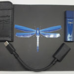 Those who have had a chance to play with any model Dragonfly, will recognize the Cobalt immediately. It is about the size of a pack of Wrigley’s Spearmint with a large dragonfly that changes colors to indicate bit-rate of the file being played. The Cobalt is slightly narrower than either of its predecessors, but otherwise the same size and roughly the same weight. At one end is the USB-A port, while at the other a single 3.5mm TRS connector is fitted. A provided cable allows for connection to usb-C but is not an OTG cable so did not allow for direct connection to my Moto Z3.