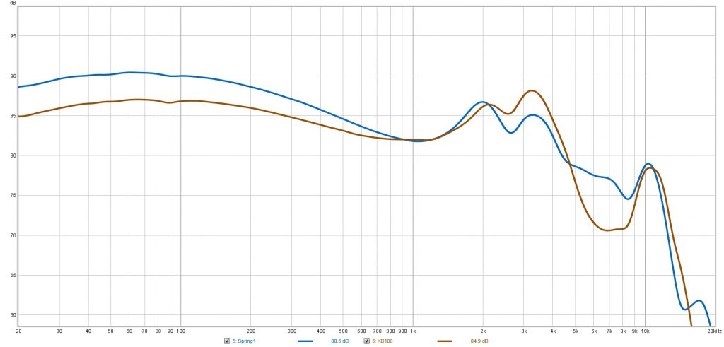 BQEYZ KB100 – I did the FR comparison on these two and I think it helps to show how little we can really learn from them. If you look at the chart below you’d expect the KB100 to be more linear in the bass with a bit of a drop-out in the treble region. To date, I have not read anyone saying the KB100 had poor treble, I also think one could reasonably conclude that with the exception of that treble dip, the two should sound similar. They don’t. No ifs, ands, or buts, these are not the same in-ear. The Timbre is better, more textured, more detailed, and as a result the Spring1 has a much more engaging tonality than the KB100. (Which is not to take anything away from the KB100 which is superb for a sub-$50 model). The differences in detail level between these two are like equating what can be seen using a magnifying glass vs breaking out an electron microscope.