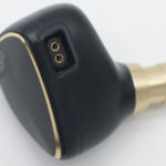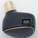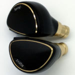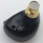 The earpieces are 3 part shells with the body being machined from aluminum and the nozzles of brass. The seam between faceplate and body is roughly 3mm from the lead edge and is well mated with no gaps, and on my particular pair it is easiest to find by feel with a fingernail as it blends very well visually. By feel, the faceplate is just ever so slightly smaller than the body. Bi-pin connectors have a raised frame around them that is machined into the faceplate and the body rather than making it from a single piece and is extremely well mated as visually the lines formed by the mating of parts show no separation or misalignment. The shells are finished in matte black with a gold ring around the perimeter of the faceplate and a gold colored nozzle accenting the package. L and R are stamped on the inside of the earpieces with a small vent below the lettering with a white filter? beneath and two larger vents nestled in a slot cut in the space immediately behind the lettering. I include the question mark as I cannot tell what the material is, only that there is something white and non-descript over the single vent while the two other vents appear to lead directly to the internals without any such filter.