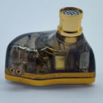 The C12 uses a 3 part shell consisting of an outer metal faceplate, an inner plastic shell and a metal nozzle. Shape is a modified half circle with the nozzle exiting the top front and the bi-pin connector exiting the top rear. The nozzle has almost no rake so provides for fairly deep insertion but due to materials, isolation is only average. A single vent sits over the dynamic driver offset slightly from the middle of the driver to avoid the curvature of the nozzle. The face-plate has a lip around the the outer edge so it sits partially in the plastics shell as seen in the pictures below. This is the opposite of most of the KZ made models where the face-plate overlaps the shell. Seams are smooth, machining of the face-plate is well done with no obvious toolmarks and fit between parts is very good. The C12 is on the larger side, but sits fairly comfortably in ear and does not approach the size of the Zs10 that was uncomfortable for many. If the Zs5 series didn’t bother you size wise, chances are the C12 won’t either.