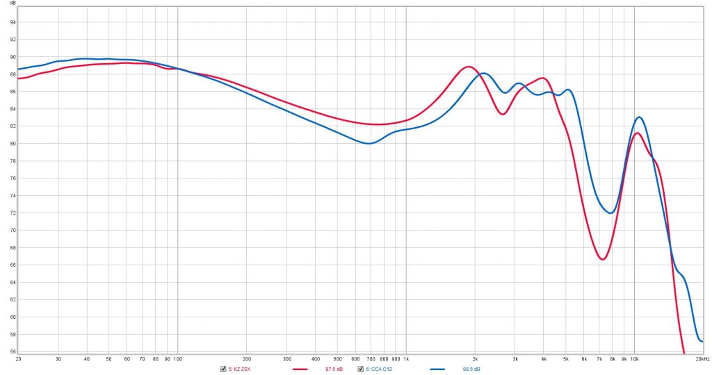 CCA has been doing a better job thus far with the 30095 in the treble than their KZ counterparts and with this model, although its twin has improved, the CCA remains a step ahead with a more linear and better tuned treble. Treble stays very level from 2kHz all the way through 6kHz before dropping back. This gives the presence region a bit of extra energy without becoming harsh or fatiguing. A later push back up at 10kHz brings back some top end air and sparkle without jumping way out in front of the rest of the signature. Treble detail is only average, but clarity is good and extension is better than expected. overall, this may be the best tuned treble out of a KZ family member to date.