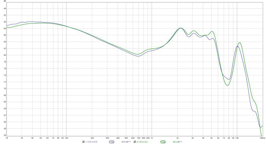 The C12 has good sub-bass when called upon with roll-off only becoming evident below 40Hz. Mid-bass has slightly less emphasis than the sub-bass but still provides good thump. Mid-bass attack is faster than decay and gives the bass a bit of extra fullness. Bass is not slow or muddy, and no big bloom is present, but it does feel slightly thickened at times. The attack gives the kick drum a nice snap on the initial hit and keeps the bass from sounding less defined. Overall, not a ton of detail in the bass, but a nice thick presentation that won’t leave the user wanting for bass quantity.