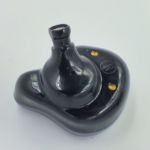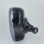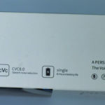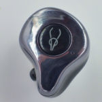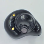 The E12 Ultra is a 2 part shell with the outer shell having a chrome finish while the inner is black. The button on the outer shell complements the inner and carries the Sabbat logo which appears to be a stylized antelope. There is a small LED at the rear edge of the outer shell at just slightly below the mid point (look at the button and then look to 4 oclock position from button center). The inner shell has a large flat portion and then a stepped central portion that contains the nozzle. It probably is not coincidence that the stepped portion is round with a diameter roughly the same as the driver, so my suspicion is the battery and bluetooth equipment hide in the flat and the driver in the stepped portion. from the stepped portion, nozzles exit the front, and have a distinct forward and slightly downward rake to them. Nozzles have a ring cutout behind the lead edge to form a lip to hold tips, and screens are slightly recessed in the nozzles. A single vent exists near the center of the raised section immediately behind the nozzles. Charging connectors sit in the flat area above the driver about 1 cm apart.