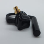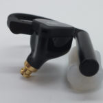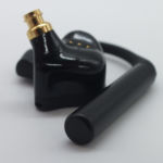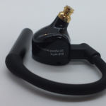The E10 is basically a bluetooth incarnation of the Zs10 Pro. Shell shape is similar but this time we have a permanently attached earhook. Shells have a metal faceplate and plastic inner shell with a brass nozzle. The faceplate has a V shaped inlay at the bottom and a large flat touch sensor above it. The mics are hiding at the bottom of the faceplate and a pin-hole in either faceplate gives away their presence. The battery tube on the earhook is made of matching colored aluminum as the touch sensor while the inner shell is opaque plastic. The central portion of the earhook is silicone rubber so those with allergies will want to be aware. The earhook at first glance appears like it ought to be detachable but is actually quite sturdy and well attached to the shell with no play.