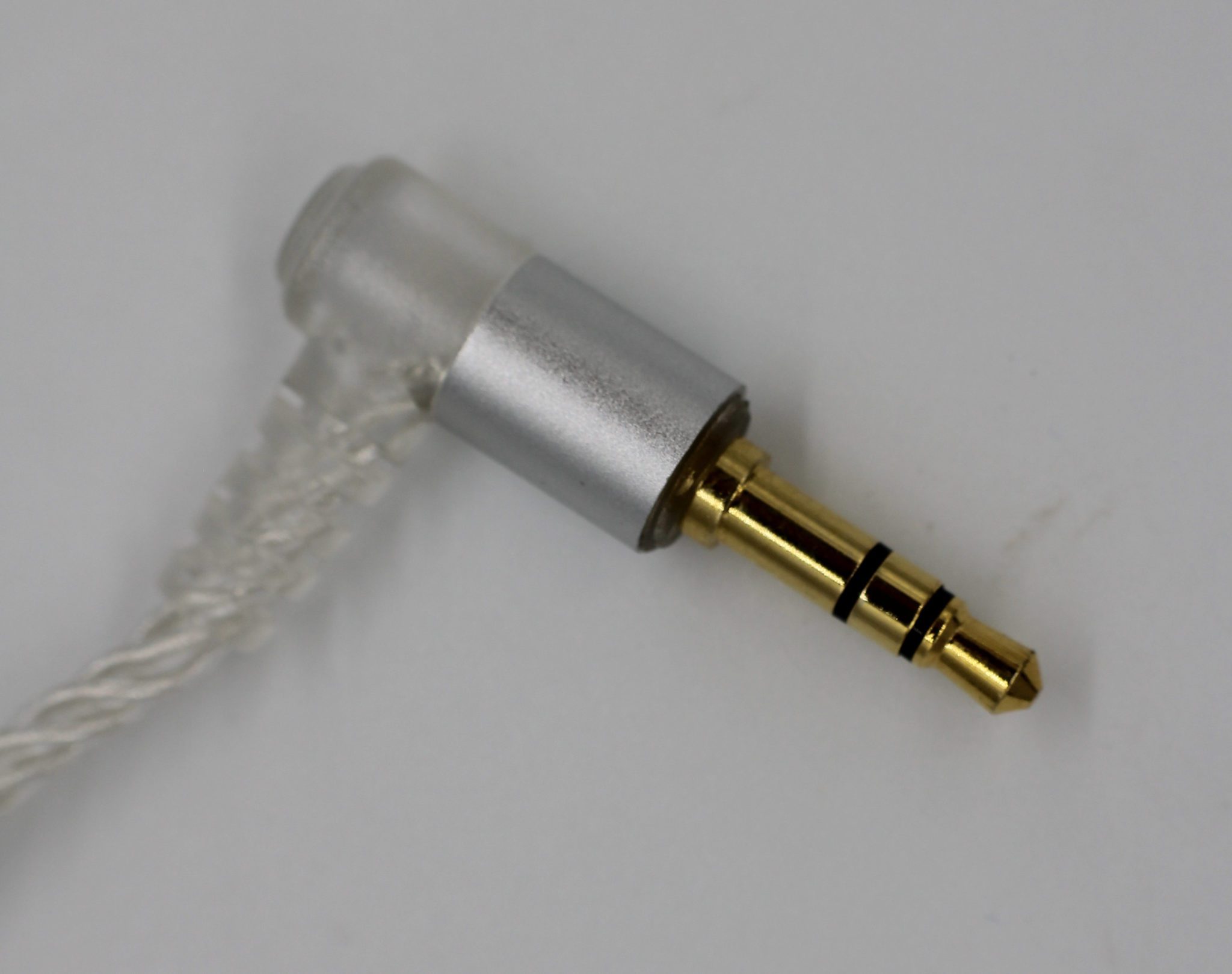 The provided cable is silver plated single crystal oxygen-free copper in 4 wire twist up to the splitter and two paired twists above that. At the south end, the 3.5mm gold plated jack is of the 90º variety that I prefer with a brushed aluminum and clear plastic housing with a proper strain relief. The splitter is matching brushed aluminum while the chin slider matches the clear plastic portion. The North end terminates with pre-formed earhooks, brushed aluminum housings, and .78mm bi-pin connectors. Connectors are extremely well marked with both L/R markings, a red housing, and blue dots to show the front pin. If you manage to get this plugged in incorrectly, you had to work at it.