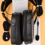 Cups are flat black with Silver/polished steel louvered grills that reduce driver reflections and still protect the driver from impacts. Connectors are the mic (2.5) and USB along with the controls on the left side. Pads are soft leather and sloped to help with fit since there is no vertical rotation of the cups. For many this will be enough to offset that lack, for a few it won’t as previously mentioned. Pads snap into place with a series of small clips that attach to a metal ring inside the shell.