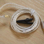 The provided cable is silver plated Oxygen free copper in a single strand “Tinsel” style. The jack is of the 3.5mm TRS straight type with a stainless housing with lateral bands around the housing for increased grip and a short strain relief. The splitter matches the jack in style with the Dunu name printed but lacks strain reliefs on either side of it. A small clear plastic chin-slider is provided and functions well. The north end of the cables terminate with pre-formed earhooks and .78mm bi-pin connectors of the standard (non-hooded) variety. The Connector on the Right has a small red dot immediately above the pins but unlike most it is on the rear side of the connector based on the earhook orientation.
