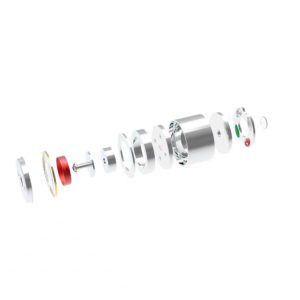 Shells are a two part design with a seam visible between faceplate and inner portions. Both are CNC machined aluminum with anodizing available in black, gray, and green so durability shouldn’t be a great concern depending on thickness of anodizing and how roughly the earpieces are treated. Faceplates have a rippled or wave pattern on the surface, while inner shells are polished smooth with rounded surfaces throughout. Shells are on the small side and are longer than tall with the nozzle exiting the top front. Nozzles have a slight upward rake and a pronounced lip for holding tips in place and allow for fairly deep insertion. I found isolation to be only average due in part to the small size of the shell and in part to a large vent at the rear. The vent is nearly directly in line with the label on the inner shell and sits on the fold between inner surface and faceplate. MMCX connectors are very slightly raised but well fitted with no gaps or glue visible.