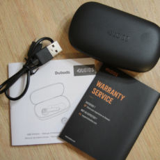 Dudios packages most of their products in the same black boxes with labels of different colors for the various models. The dubuds use a light blue label with an image of the case and earpieces on the front. They do not have specs on the packaging and for those you have to hit their web pages. Opening the bookfold style box reveals a foam surround with the case and a narrow box down the hinge edge of the box that contains the charging cable. Overall the kit is fairly minimal, but remember this is a consumer level TWS that retails for sub-$75.