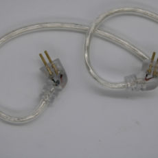 The provided cable is listed as 4 core silver coated oxygen free copper with a 2 strand twist from the jack to the splitter and single strands above that point. Fixtures are checkered aluminum for the jack (3.5mm straight style) and splitter with strain reliefs above the jack and below the splitter. a microphone with 3 button remote is provided on the right side cable, the microphone housing is also brushed aluminum but without the checkering of the other fixtures. The north ends terminate in clear housings with pre-formed hooks and . 78mm bi-pin connectors. One can easily be fooled into thinking this is a hooded type connector by the looks, but it is a standard bi-pin connector with a clear housing that imitates the hood commonly seen on some other models today.