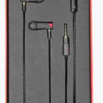 The earpieces are barrel shaped with a 2 part construction. The nozzle is built into the forward portion while the rear face slides into the front portion to seal the unit. Both parts of the shell are anodized aluminum with the forward portion being matte black and the rear a gloss red in keeping with the packaging theme. MMCX connectors exit the bottom rear of the shell and have tuning ring around the base that acts to open or close the rear venting. Another small vent exists at the lead edge of the bottom of the shell and provides venting to the front of the driver. Some caution is needed here as oversized tips can obstruct the forward vent and alter the signature. Nozzles are short with a pronounced lip for tip retention and overall isolation is quite good although they don’t take up a lot of space in the ear. L/R markings are prominent on the under side of the housings and make it easy to index quickly. The design lends itself to a comfortable fit for most ears and it fits mostly in the ear for me with only the cable portion external to the ear. I will note that the tuning rings are somewhat fragile and a couple spare pairs would be a nice touch as I broke one trying to put it back on after testing without them. Luckily one extra pair is provided and I prefer the signature without the rings anyway, but for that change them often, you may need to contact Cat Ear for extras.
