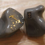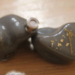 Shells are 3d printed resin with an aluminum alloy vent insert at the rear, and alloy nozzles as well. Shells are available in red, dark blue and grey and feature the now standard semi-custom shaping that allows for fairly deep seating in the ear. Fit and polish between the gold speckled faceplate and the solid grey body is very good and hard to feel with a fingernail. bi-pin connectors are also well fitted with no gaps, raised edges, or fit issues. Nozzles sit forward of the main body and have little or no rake so allow for fairly deep insertion which is partially mitigated by the very shallow stock tips. When tip rolling the BD005p, that is a consideration as a standard height tip will increase insertion depth markedly. Also worth noting is the BD005 uses a size smaller tips than many and standard tips from other models may dislodge as they don’t retain enough grip on the nozzles. Comfort was good for long wear as the BD005p retains its smaller than average size and has little weight.