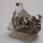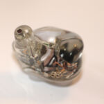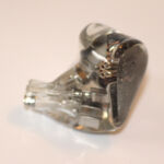 The S8 uses an all resin shell in the standard semi-custom shape with polished clear resin allowing for every detail inside the unit to be seen and studied. Shells are 2 part with an inner shell and nozzle and a very shallow faceplate with a silver insert with Solution S8 in relief. While I first thought the insert to be metal, putting a light behind it shows it to be translucent so I suspect it may be painted on the inner surface of the faceplate. The nozzles have a pronounced forward rake and sit largely in front of the main body of the earpiece when worn. Each nozzle has 3 sound bores, 1 lined and 2 cut directly into the resin and neither has a lip for tip retention. Roughing the outer surface of the nozzles with a fine steel wool or file might help with tip retention although I didn’t find it an issue using spin-fits or the provided tips. Because the body sits largely behind the nozzles, isolation is only average and some outside noise can be expected. The shells are mid-sized as one might expect with 8 drivers per side but are shaped well and were comfortable for extended wear for me. Those with smaller ears may wish to audition before purchase.