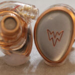 Outer shells are silver painted with a Whizzer logo in copper while inner shells are clear with copper nozzles. The copper ring around the driver is very visible was well which makes copper the primary color when looked at from the underside. Shells are acrylic and shaped in a half circle/tear drop design with the nozzle exiting the lowest point with a distinct forward rake. Nozzles have a lip for tip retention and seat fairly shallow so isolation is only average. Size is medium small so fit should not be a problem for all but the smallest ears. I had no issues with fatigue during extended wear once I found a proper fitting tip.
