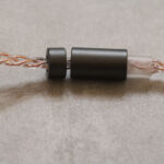 The provided cable is made of 80 strands of 5N OFC in 4 clear casings that runs as a double twist pattern from the straight 3.5 jack at the base to the matching splitter and then continues as single twists up to the ear-hooks. Hardware is gunmetal gray with a copper accent on the jack housing and HE01 in a darker gray on the splitter. A clear plastic chin-slider is provided and connectors have matching clear housings with copper rings and a red dot on the right for indexing. Connectors are 0.78mm bi-pin with a round hood that overlaps the body of of the raised connector on the earpiece. This may make finding a replacement cable a little more challenging as the connector type is a non-standard design. (Standard 0.78mm bi-pin cables work but look a bit awkward.) The cable is a bit tangle prone so using the provided Velcro tie is advisable.
