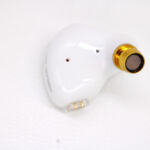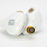 The Ks1 follows a very similar pattern to the earlier KS2 I reviewed (at least on the exterior) with a 4 part shell made of white resin face and inner shell, clear plastic bi-pin housing, and brass nozzles. Unlike the KS2, the KS1 uses an opaque material so the internals are not visible even in bright light. The KBear logo is on the front of the shell with KBear KS1 and L/R marked in matching gray across the rear surface. The shell is of the semi-custom shape with two vents on the under side of the shell, one immediately above the nozzle and a second in line vertically above that. Nozzles have a forward and upward rake that helps with insertion depth and allows better isolation than the KS2 provided. This is probably partially due to a bit thicker shell as well. Fit and polish are good with seams tightly sealed and no glue, gaps, or slop.