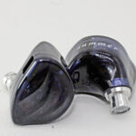 Unlike the previous seasons (spring 1 & 2) the shell of the summer is acrylic rather than aluminum but dimensions and shape are largely the same with the addition of a small spur to the rear of the inner shell. The result is a slightly lighter medium sized shell with a more ornate face-plate as the previous models are smooth surfaced where the Summer has 3 stylized ripples in the outer surface. Currently two colors are available which are listed as blue and black. The model I received is listed as black but is actually a very dark shade of purple as can be seen in the better lit photos. It looks black in average light, but shows a purple/blue color in bright light. Shells are 3 part with an acrylic face and inner shell and aluminum nozzles. Nozzles have a forward rake and a pronounced lip for tip retention. Shells have a vent immediately behind the nozzle and another pair nearer the rear edge of the inner surface. The bi-pin connectors have a slight recess rather than using a hooded connector. I found the shells comfortable and had no problem with extended wear. I also found the mid-sized stock black (reference tips) worked well so didn’t have to spend long getting tips sorted out like I sometimes do.