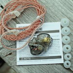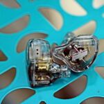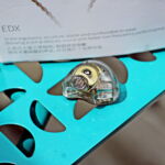 The EDX shell is a small semi-custom inverted teardrop of clear acrylic material that allows full view of the driver and wiring. There is a silver X on the face plate to identify the model and “KZ EDX” and “bass dynamic” printed on the top edge of the inner shells. There are two vents on the inner surface, one directly over the center of the driver and a second near the outside edge of the drive close to the top of the inner surface. Bi-pin connectors are interesting in that the connector itself is recessed in the shell, but also stands taller than the recess so a semi-hooded connector is mated to it and both the shell and casing on the connector provide additional support. Nozzles are part of the inner shell with a slight upward and forward rake when in wearing position and a prominent lip for tip retention. I found them to be an easy fit when paired with the large tips and comfortable for extended wear. Isolation is only average due to the small size and construction style.