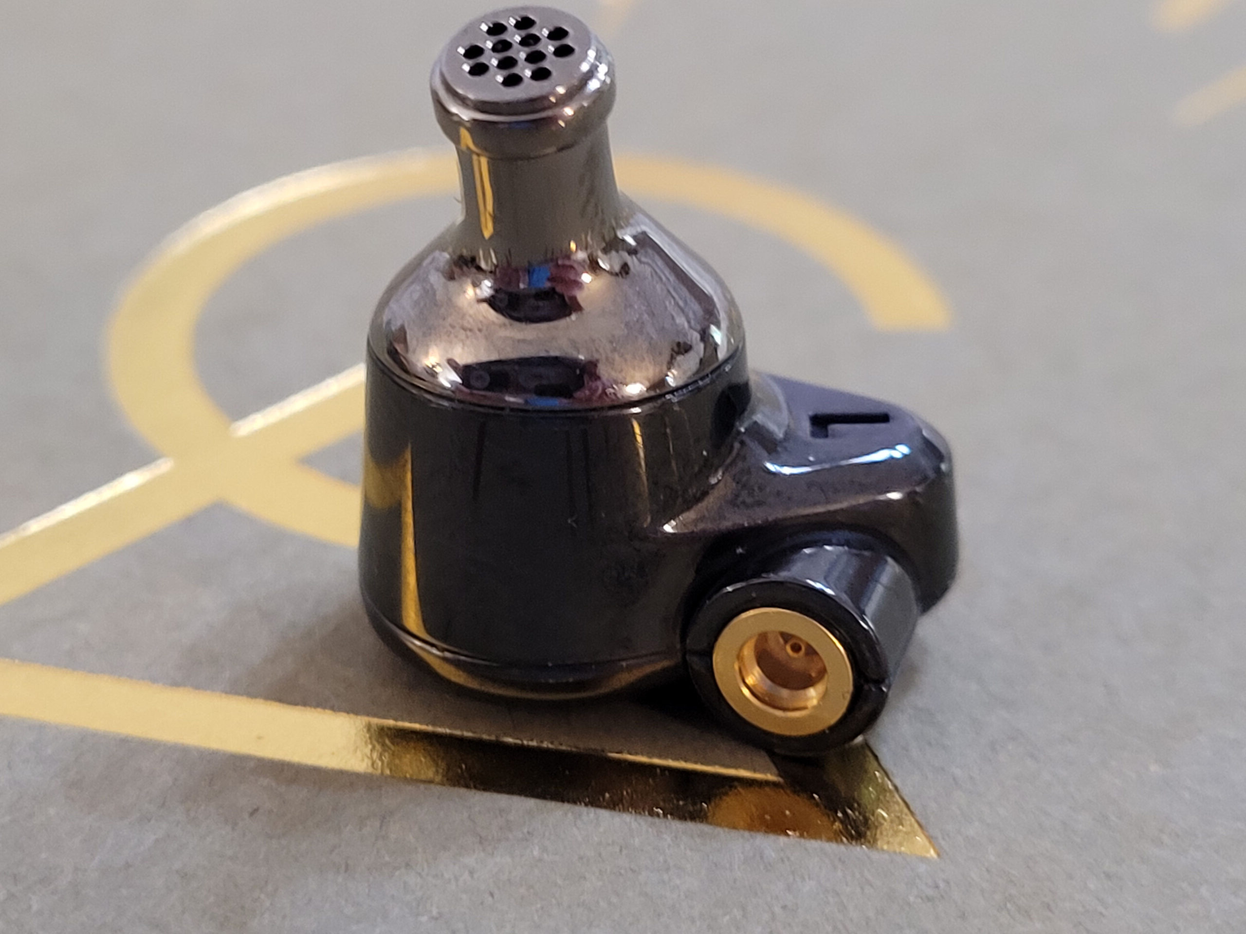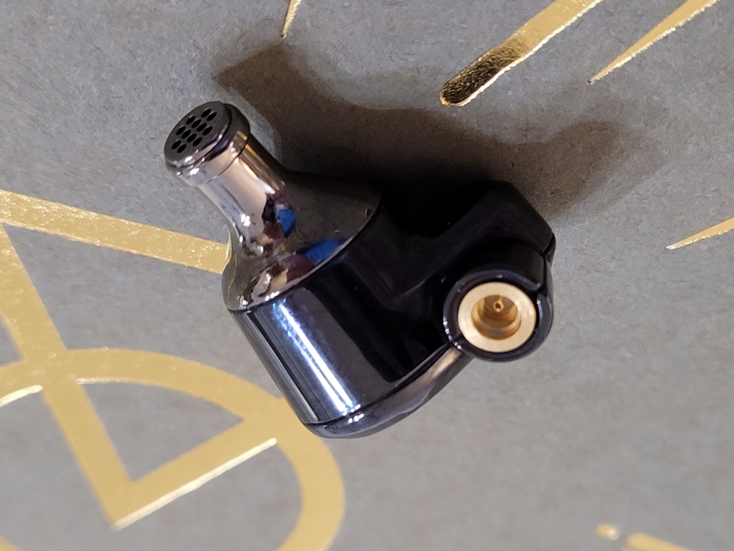 The Dorado 2020 stays with the same basic shape as the original model although dimensions have minor variations. The shell is made of what Campfire calls black ceramic material that to my eye is more a dark gray with a high gloss finish. The inner shell and nozzle are made of brass and PVD coated which gives them a high gloss almost blued steel look to them. While not an exact match to the inner shell color, they blend nicely and with most of the inner shell hidden when in use are not likely to draw attention. Shells are a three part arrangement with a thin face plate, a thick inner shell that includes the mmcx connector, and a thin inner shell with nozzle. Nozzles exit the center of the barrel with a fairly steep forward rake for deeper insertion. There is a single vent on the outer shell at the junction of the round portion and mmcx housing. The rounded shape of the Dorado does allow it to roll some in ear and the ear-hooked cable while helping to hold it in place may need some adjustment for the hooks to be tight enough to prevent movement during activity. I found the Dorado comfortable for extended use with medium sized tips and experienced no physical fatigue during wear.