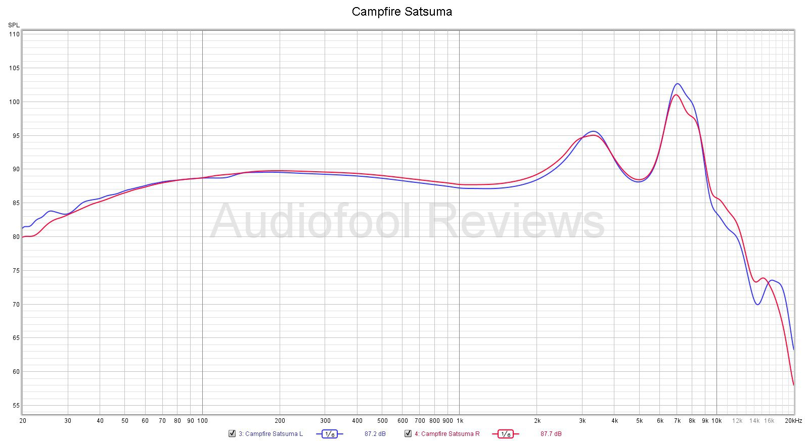 There is a lower treble push forward that helps with vocal presence but is kept in check where it doesn’t get harsh or strident. Snare rattle is nice and crisp as well but cymbals can be a little splashy and metallic depending on the recording and source. This may be partially due to a marked emphasis in the 7-9kHz range that gives the Satsuma a nice open top end but also can be prone to becoming harsh if not paired well. Overall the treble is very smooth and a touch warm so the peaks are not particularly dominant features of the landscape but that makes the places the harshness does show up that much more noticeable.