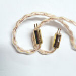 The provided cable has gold accents at the jack, splitter, and bi-pin connectors that match nicely with the gold banding in the face plate. Even the wires themselves, 4N OFC and silver plated OFC, are a mixture of copper (rose gold per LZ) and gold colored strands to match the face-plates. The wires are an 8 wire braid from jack to splitter and a looser 4 wire braid above that point. The jack is a 3.5mm single ended type in a straight housing with a slight wasp-waist to the housing for better grip. The splitter has a matching aesthetic in both shape and color while the connectors at the north end share the color but are a simpler barrel style. Connectors are 0.78mm with prominent L and R on the housings in white for easy indexing. The cable is a good mix of lightweight materials so while it is a fairly large cable, it doesn’t feel large when worn and puts no extra pressure on the earhooks.