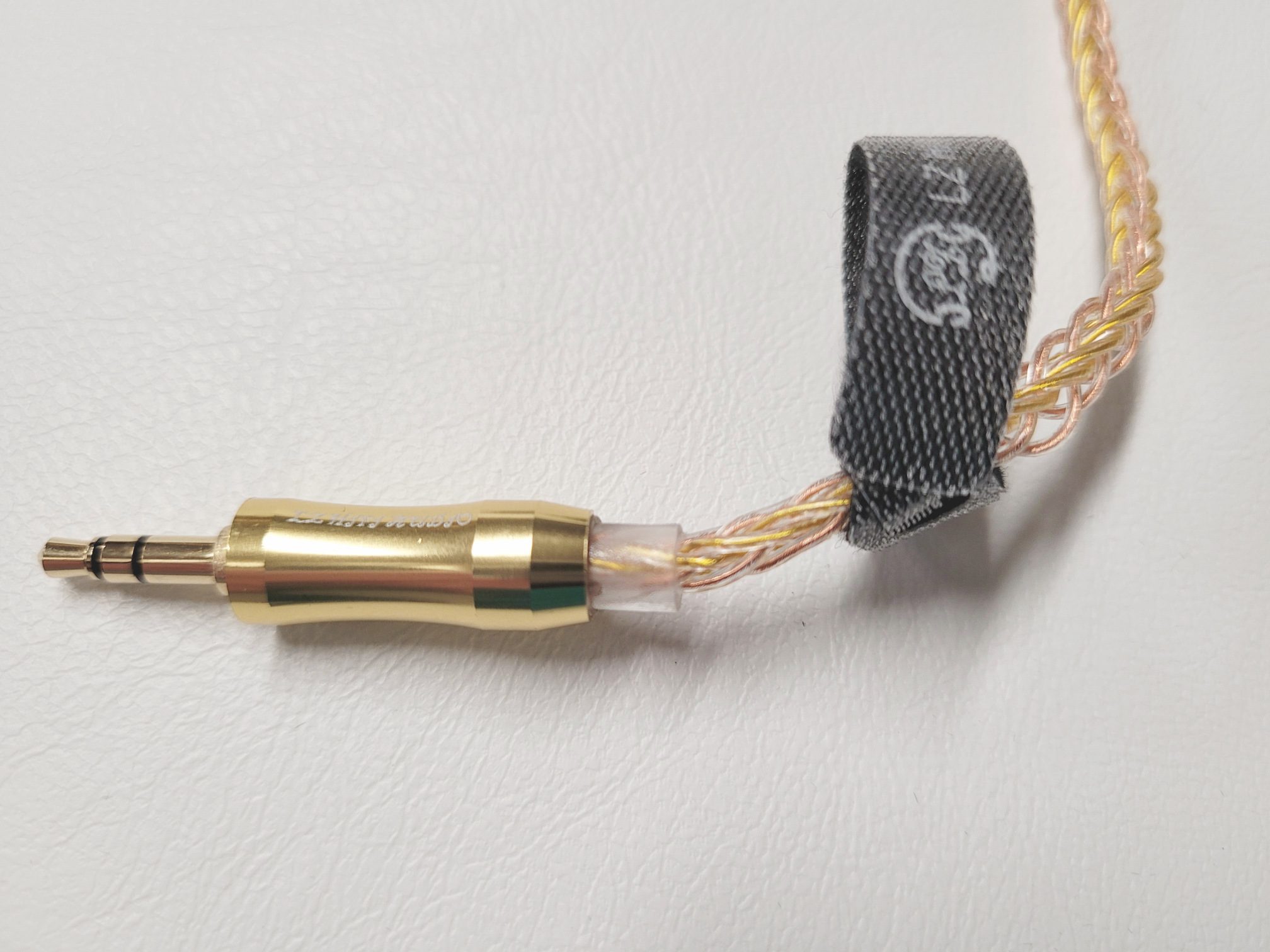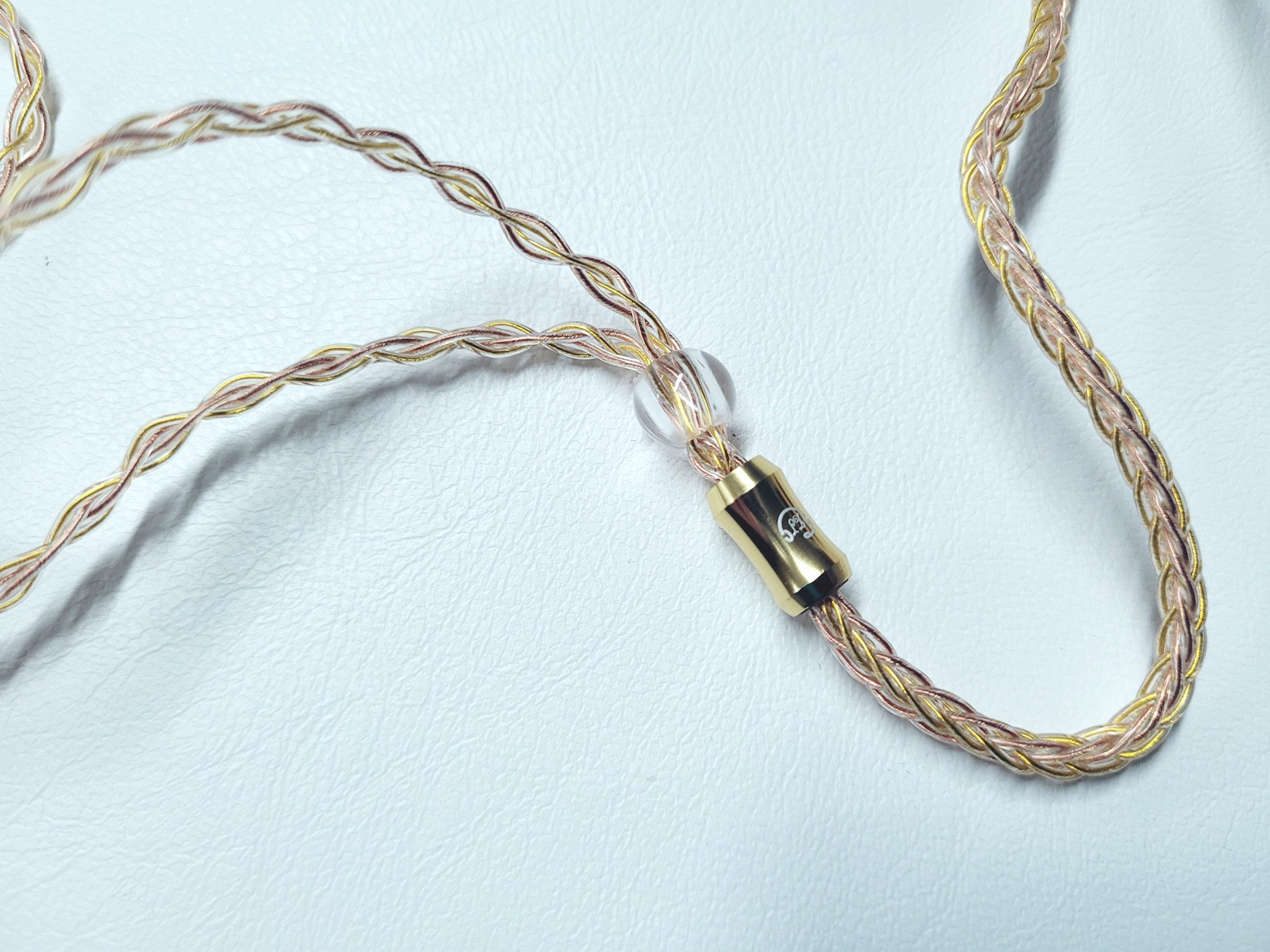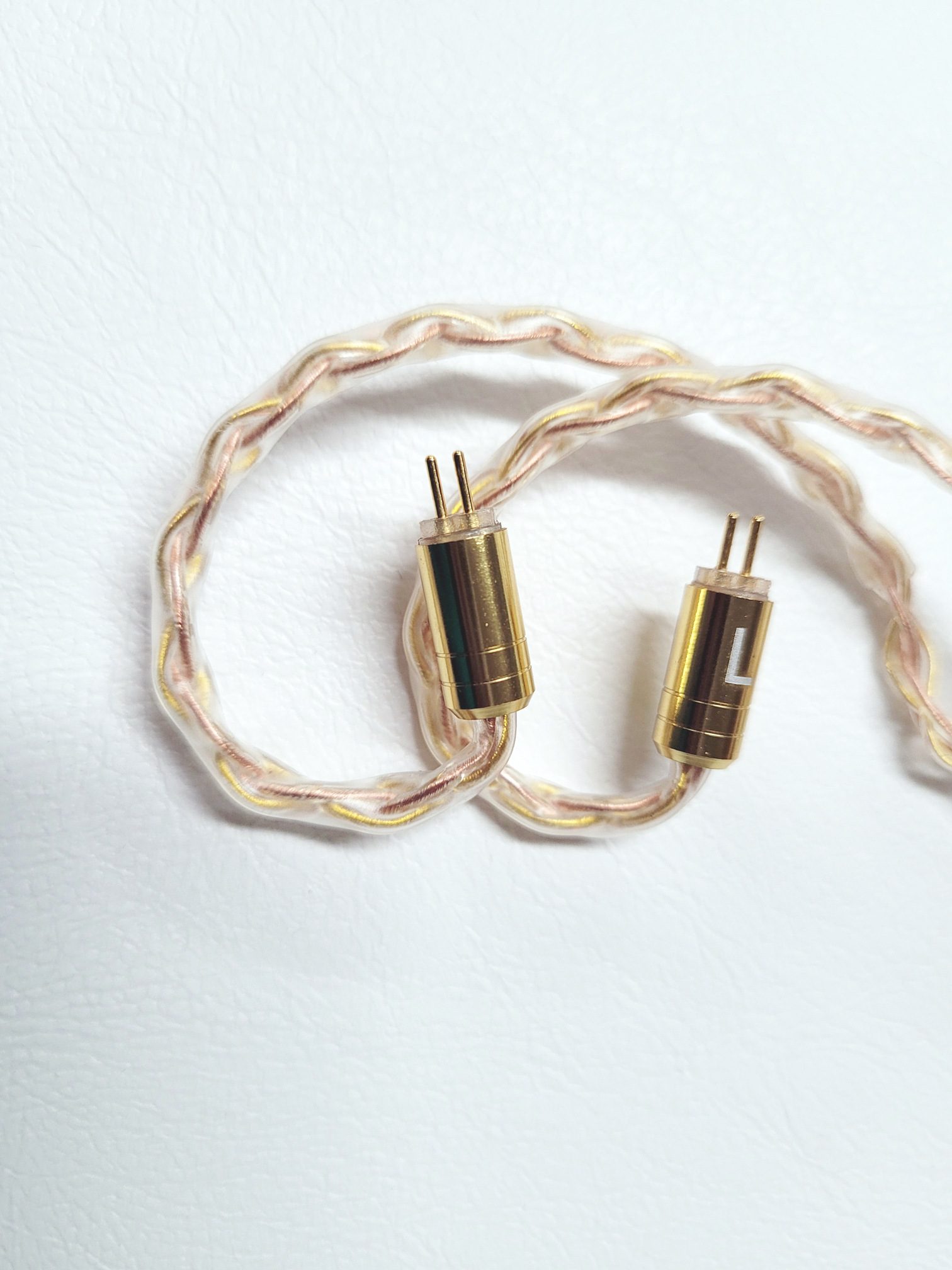 The provided cable has gold accents at the jack, splitter, and bi-pin connectors that match nicely with the gold banding in the face plate. Even the wires themselves, 4N OFC and silver plated OFC, are a mixture of copper (rose gold per LZ) and gold colored strands to match the face-plates. The wires are an 8 wire braid from jack to splitter and a looser 4 wire braid above that point. The jack is a 3.5mm single ended type in a straight housing with a slight wasp-waist to the housing for better grip. The splitter has a matching aesthetic in both shape and color while the connectors at the north end share the color but are a simpler barrel style. Connectors are 0.78mm with prominent L and R on the housings in white for easy indexing. The cable is a good mix of lightweight materials so while it is a fairly large cable, it doesn’t feel large when worn and puts no extra pressure on the earhooks.