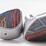 To facilitate, mass production, the EJ07M has gone to a CNC machined 316 Stainless steel inner shell with nozzles machined as part of the inner shell. Shape is a fairly uncomplicated tear drop shape with nicely rounded edges and the nozzle having a very slight upward rake when in the ear. Nozzles do have a lip for tip retention and seat fairly shallowly in the ear which for me is more comfortable. The Steel shell comes in either brushed finish or a dark gun-metal depending on the face plate it is paired with. The darker color mates to a carbon fiber and gold flecked faceplate while the brushed finish mates to an artistic painted faceplate that guarantees each EJ07M is unique in aesthetic even if mass-produced. Fit and Polish are quite good with the seam between face and inner visible but not discernible by touch. the bi-pin connectors are also well fitted with no visible gaps between steel and connectors. Size is mid to small and all but the smallest ears shouldn’t have a problem with fit. Comfort was also quite good with long wear leading to no physical fatigue. Isolation is above average despite a single small vent on the rear face of the shell and a relatively shallow fit. These do have good heft in hand but don’t feel overly heavy in the ear so durability should be good without the weight becoming a problem.