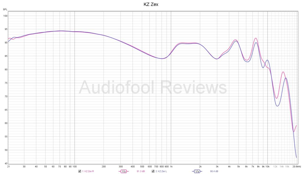 Lower treble starts out on the same plane as the upper-mids but drops back some as it moves up which keeps it from having too much push in the lower treble and results in a fairly polite tuning. There are definitely some frequencies that get a little push forward with one around 5kHz and another around 8kHz that keep the Zex from feeling closed in but thankfully the upper peak drops back quickly so as to avoid the classic KZ ear-spike at 9kHz. Snare rattle has a nice crisp edge with good definition to the body as well but cymbals lack a touch of energy that keeps them from being entirely realistic. Air and sparkle is limited but this is obviously a tuning choice as the Zex is a bit more laid-back and easy-going as a result.