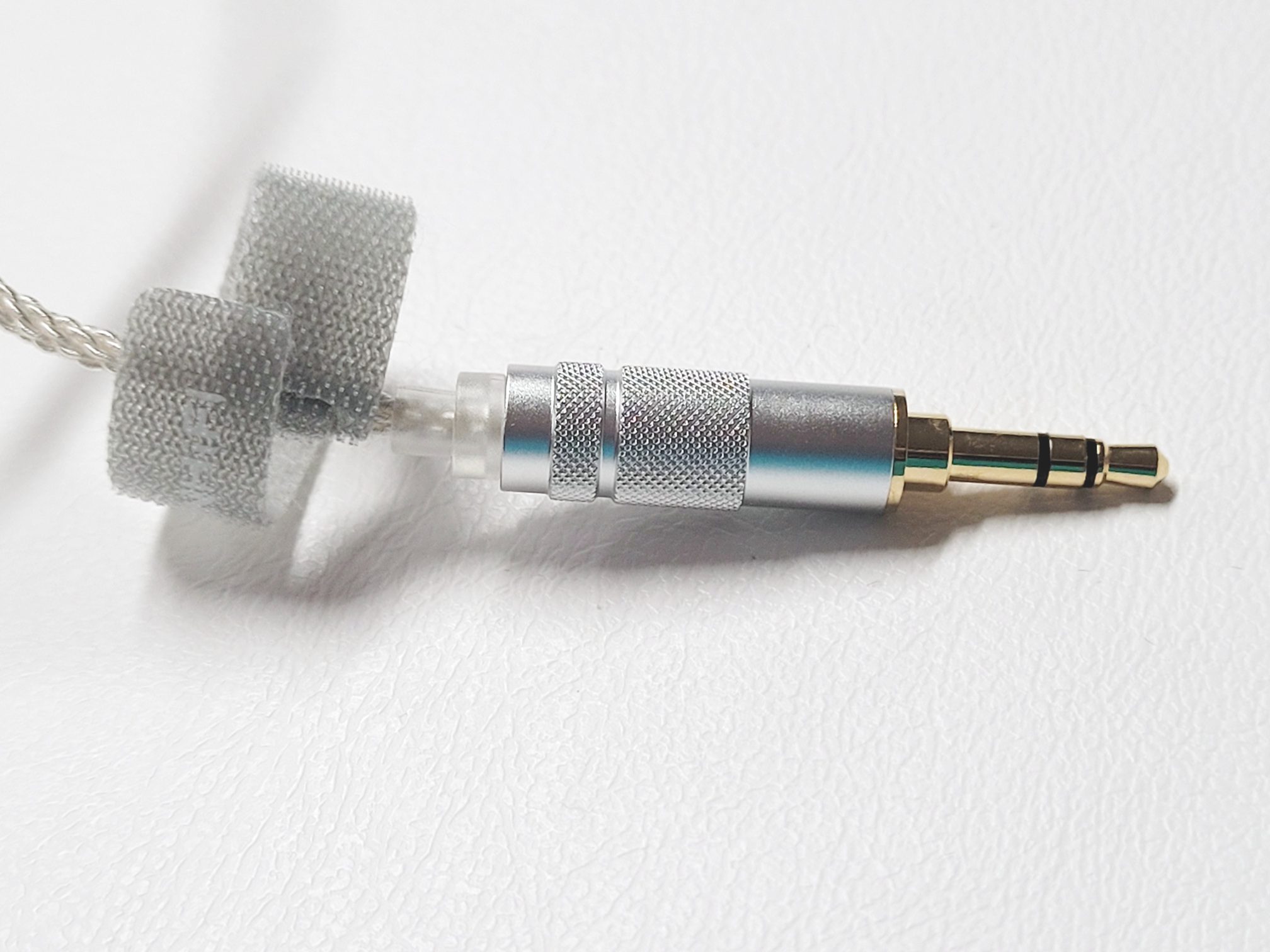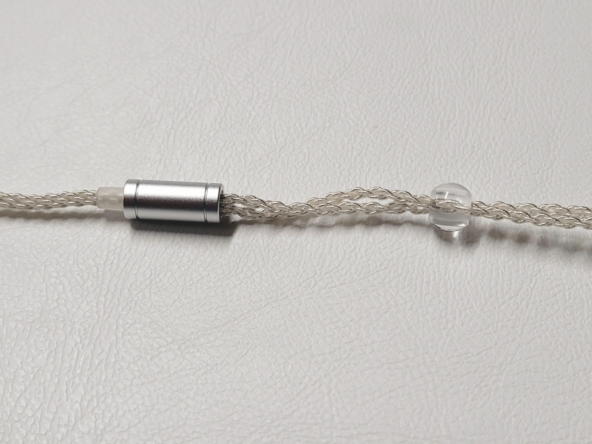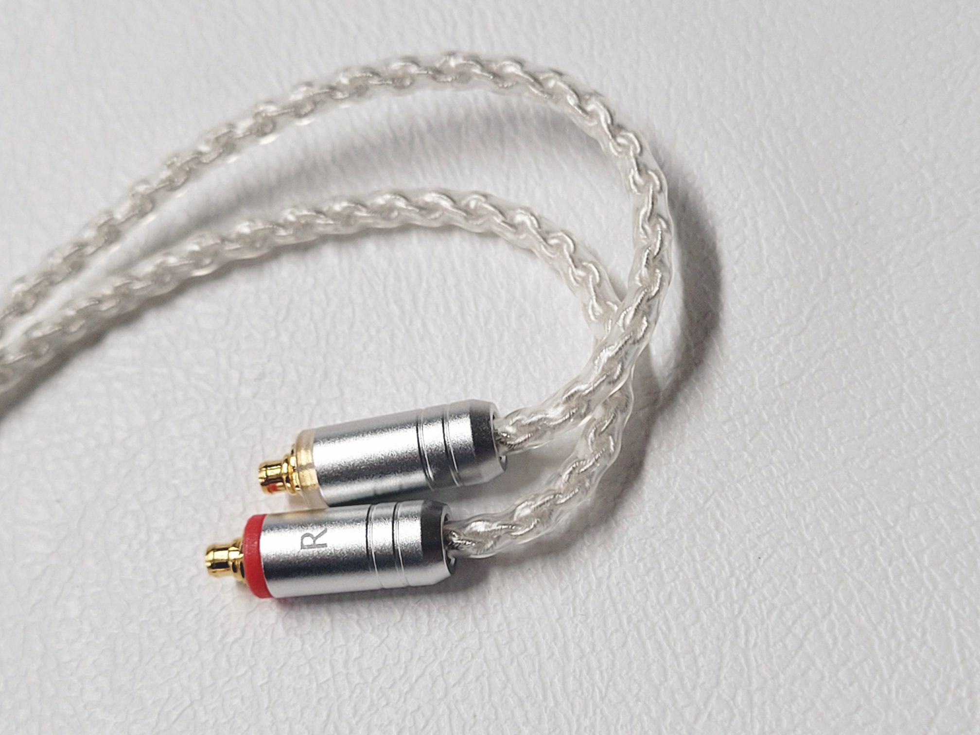 The provided cable is silver plated copper in a 4 wire twsit from the jack to the splitter with a looser two wire twist above the splitter. The Jack is a straight 3.5mm in a silver knurled aluminum housing that mates well to the earpieces. A short strain relief and velcro cable tie are present at the cable exit point. The splitter is also an aluminum barrel with a clear bead chin slider above it. The north end of the cables have pre-formed hooks with matching aluminum housings for the mmcx connectors. Left and right are well marked with both L/R markings and a red band on the right hand connector and matching red and blue bands on the earpieces. The cable is very pliable and microphonics are kept to a minimal level by the earhooks.