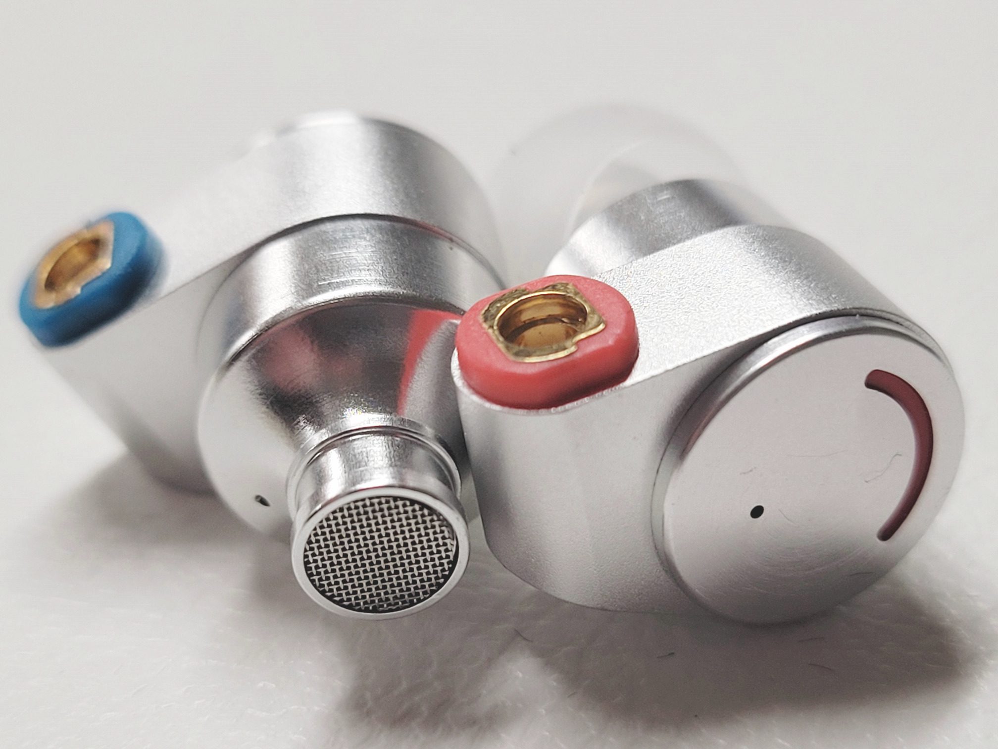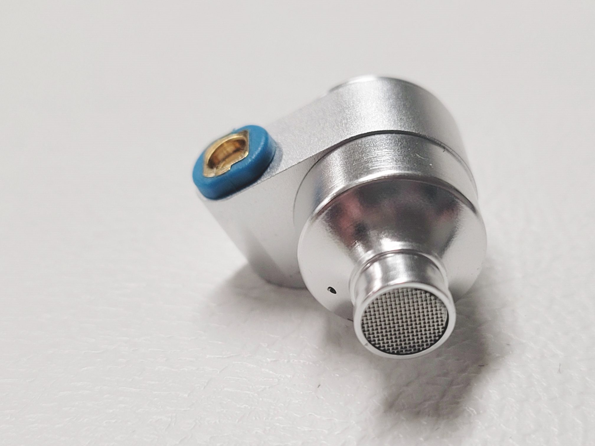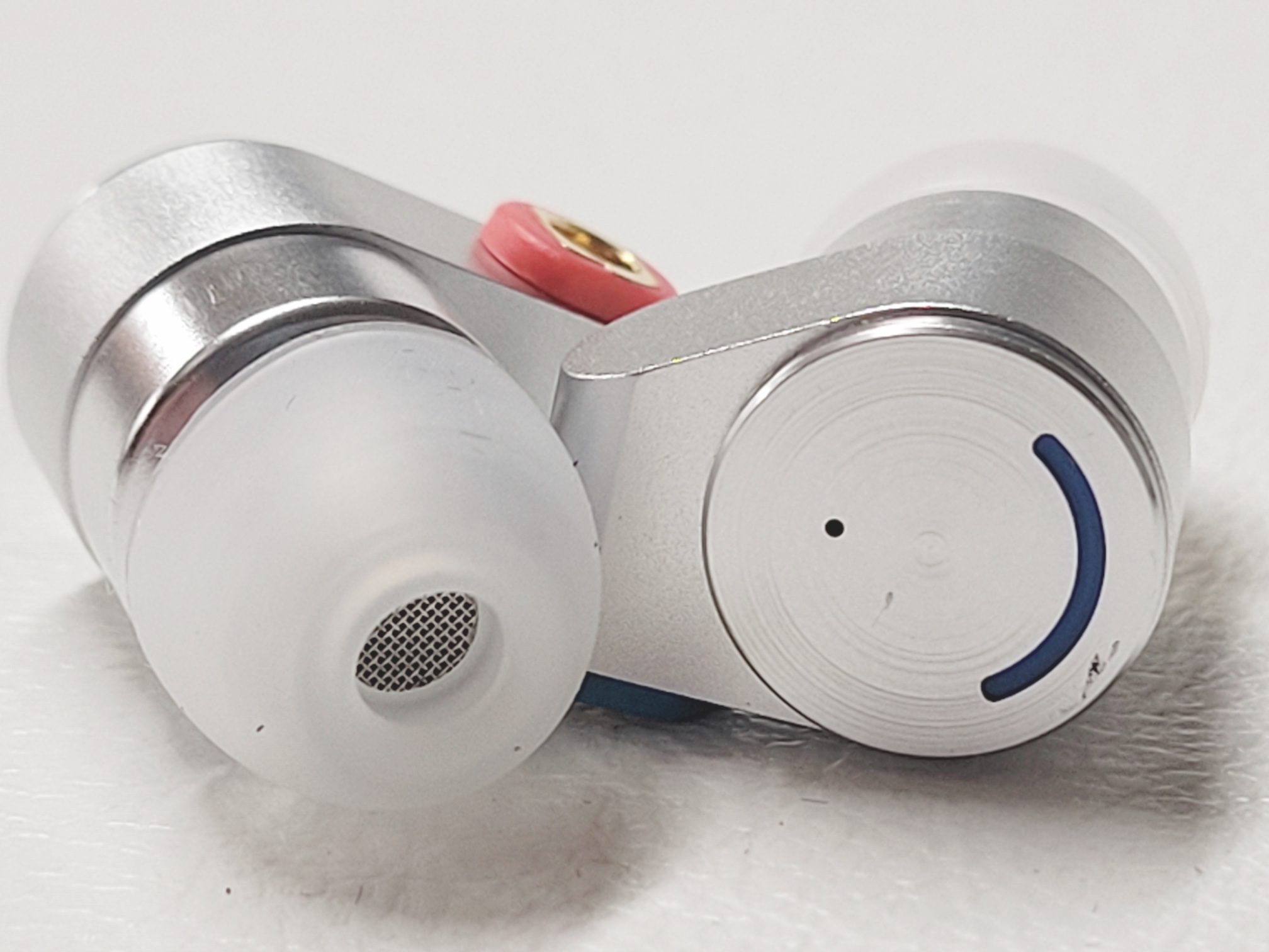The provided cable is silver plated copper in a 4 wire twsit from the jack to the splitter with a looser two wire twist above the splitter. The Jack is a straight 3.5mm in a silver knurled aluminum housing that mates well to the earpieces. A short strain relief and velcro cable tie are present at the cable exit point. The splitter is also an aluminum barrel with a clear bead chin slider above it. The north end of the cables have pre-formed hooks with matching aluminum housings for the mmcx connectors. Left and right are well marked with both L/R markings and a red band on the right hand connector and matching red and blue bands on the earpieces. The cable is very pliable and microphonics are kept to a minimal level by the earhooks.