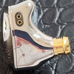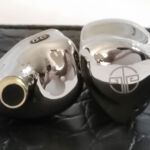 The earpieces are highly polished aluminum shells with a matching faceplate in a semi-custom shape. Size is on the small side and T-force marketing materials suggest a long-term development program using their oem experience and computer aided design to create a shape with long term comfort. I found the design quite comfortable as it sits mostly in the ear and weight is light enough to keep it from being an issue. The aluminum shells should ensure durability and are well polished and fitted with no play or space between metal and connector at the bi-pin. The Nozzles are brass and tightly fitted to the inner shell with a large lip for tip retention and a slight forward and upward rake when inserted in the ear. There are two vents, one on the faceplate immediately opposite the nozzle and the second on the inner surface at approximately the mid-point. Some will find the shells a fingerprint magnet and I did have some difficulty taking pictures without inadvertent self-portraits.