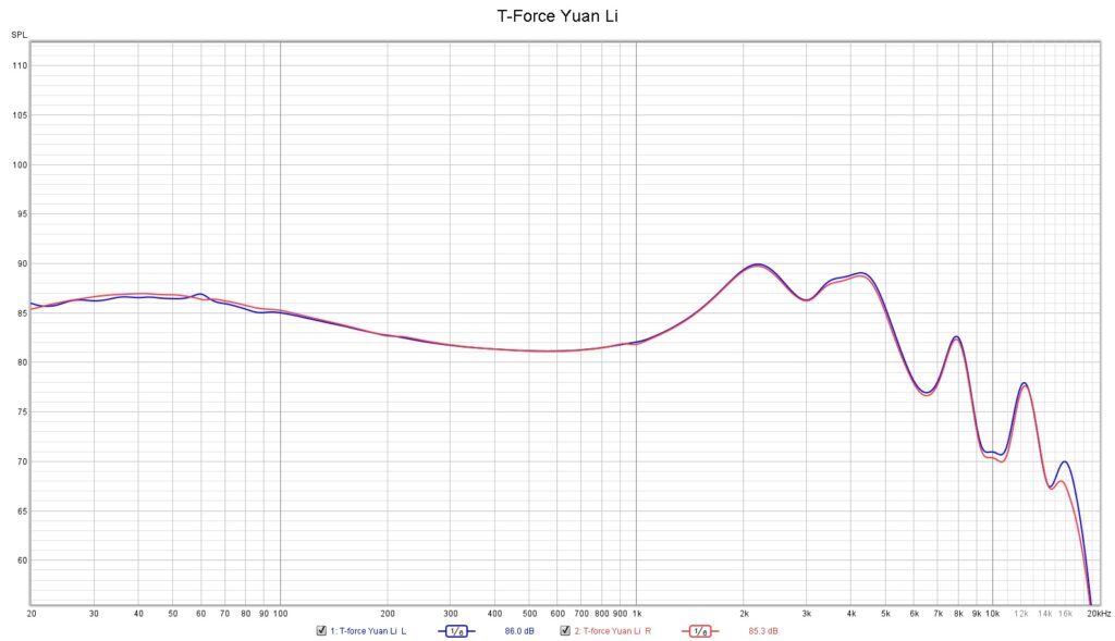 The Lower treble is on the same raised plateau as the upper-mids before dropping back at roughly 5kHz. This gives the lower treble good clarity and allows a lot of detail to shine through without taking it over the edge into stridency. Snare rattle is good and sharp and cymbals have good energy if not quite enough to be wholly correct. The drop-off above 5kHz helps tame the top-end and keep the Yuan Li from becoming fatiguing, but it does limit the top end a bit. Air is good as the Yuan Li doesn’t sound closed in, but sparkle is limited and these don’t please those looking for a super-extended treble. Final roll-off is well above the limit of my hearing but the practical roll-off is nearer to 12kHz where it drops back considerably before finally rolling off entirely above that mark.