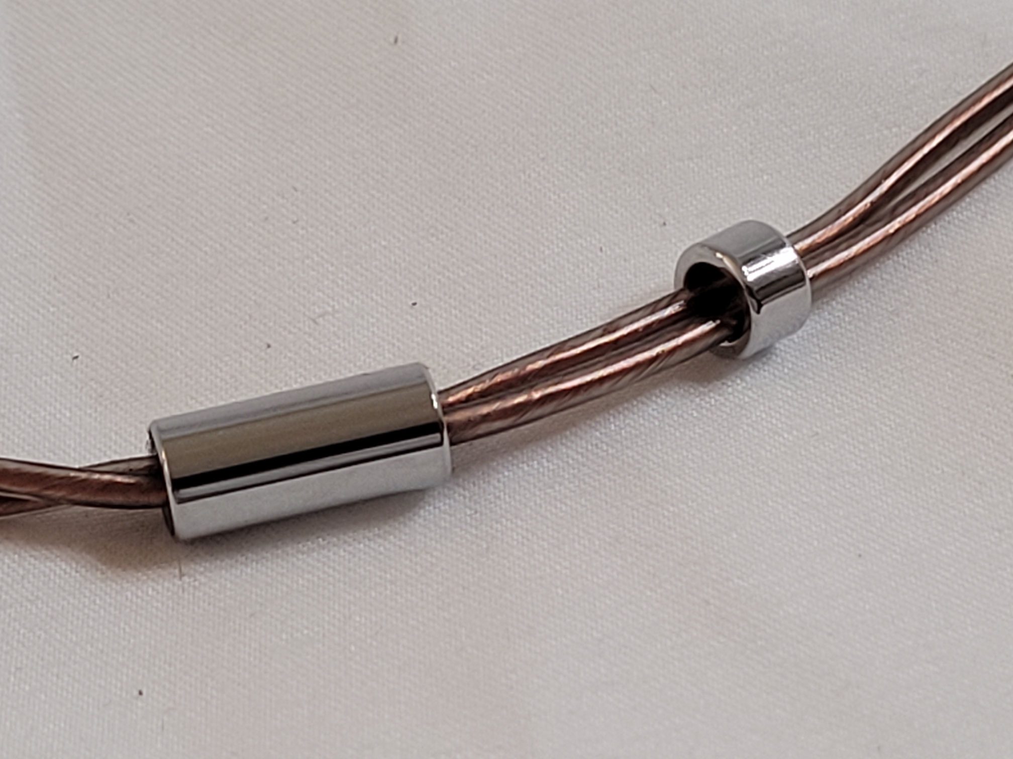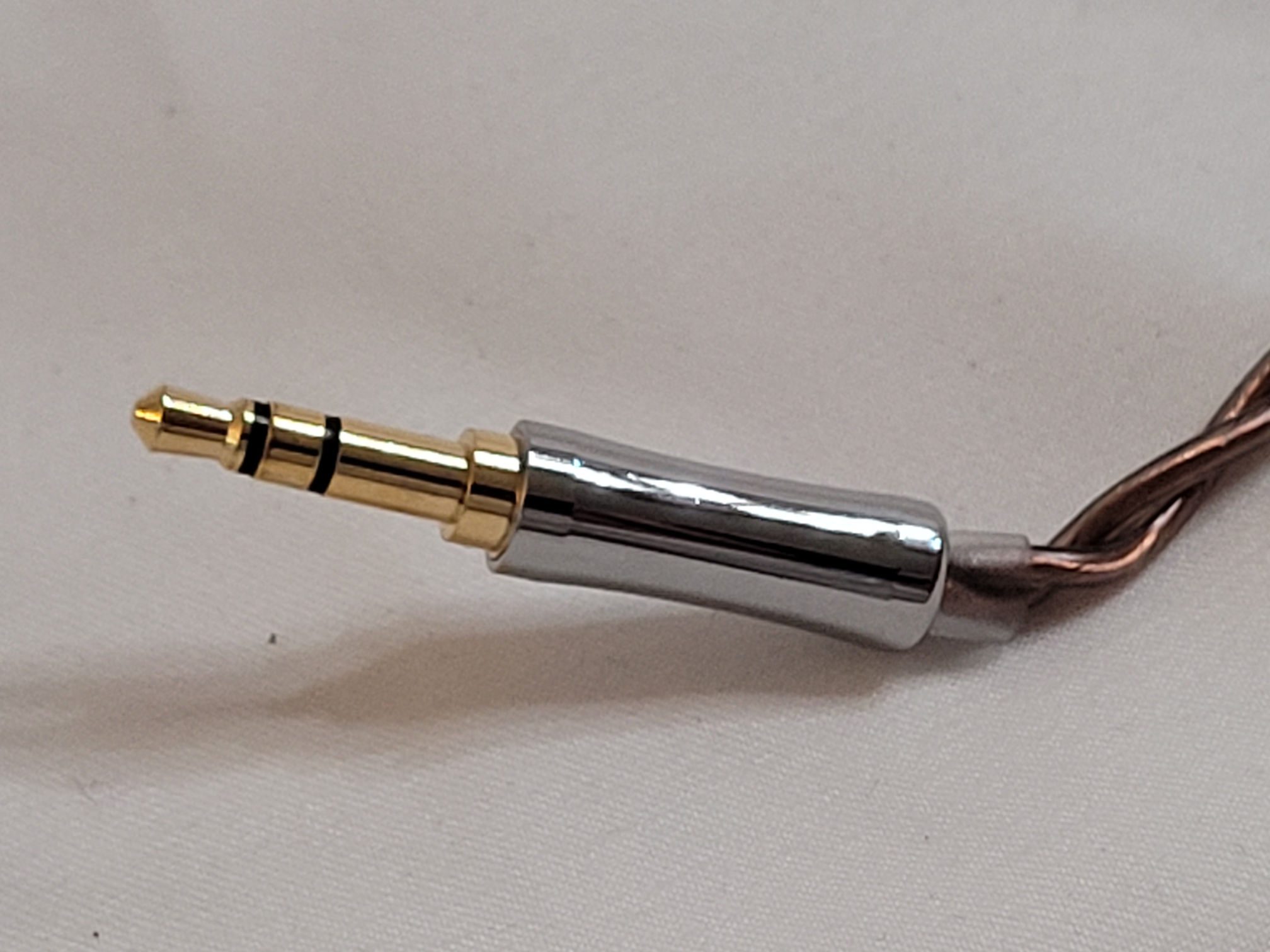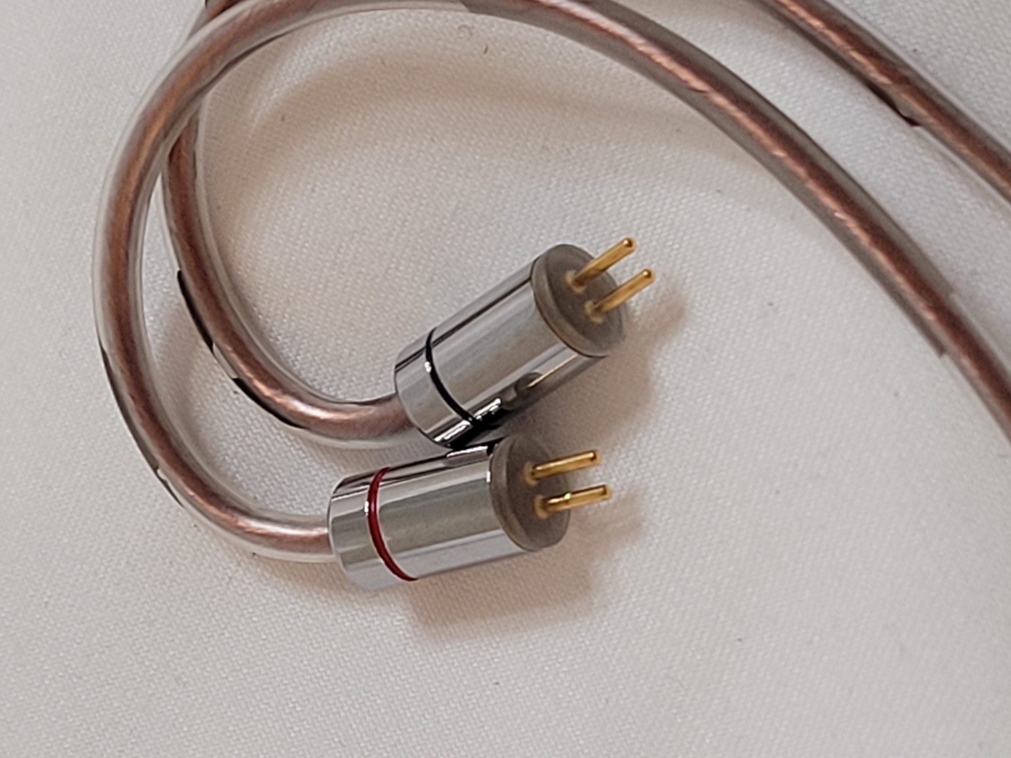 The cable included with the Yuan Li utilizes two different diameters of 6N OCC Copper wire as conductors with a layer of Dupont Insulator between the two separating the conductors. The wires run as a two wire twist from the 3.5mm jack up to the splitter and then run as single wires up to the 0.78mm bi-pin connectors. The outer casing of the wire is a smoked clear material that gives the copper a dusky color and offsets the mirror polished metal jack housing, splitter, chin slider, and connector housings. At the north end the cables do have pre-formed hooks for over ear wear with the right housing having a red band for ease of indexing. I found the cable pliable with no memory after being coiled for a week which is good as far too many kink or develop a memory and want to tangle or retain loops after being coiled.