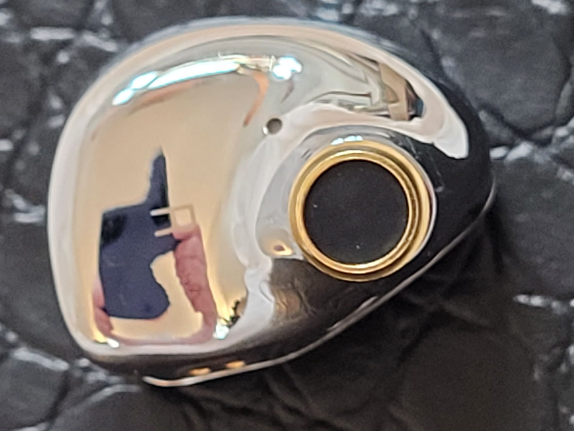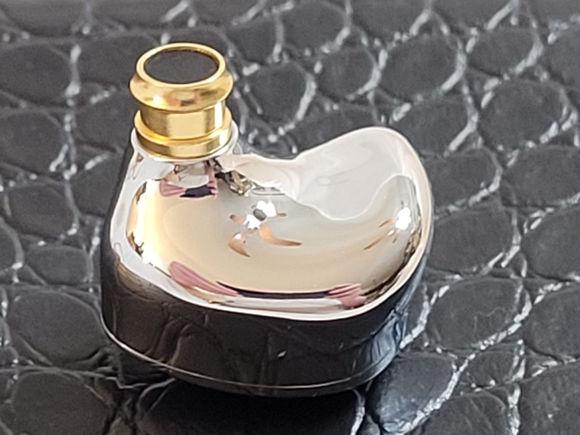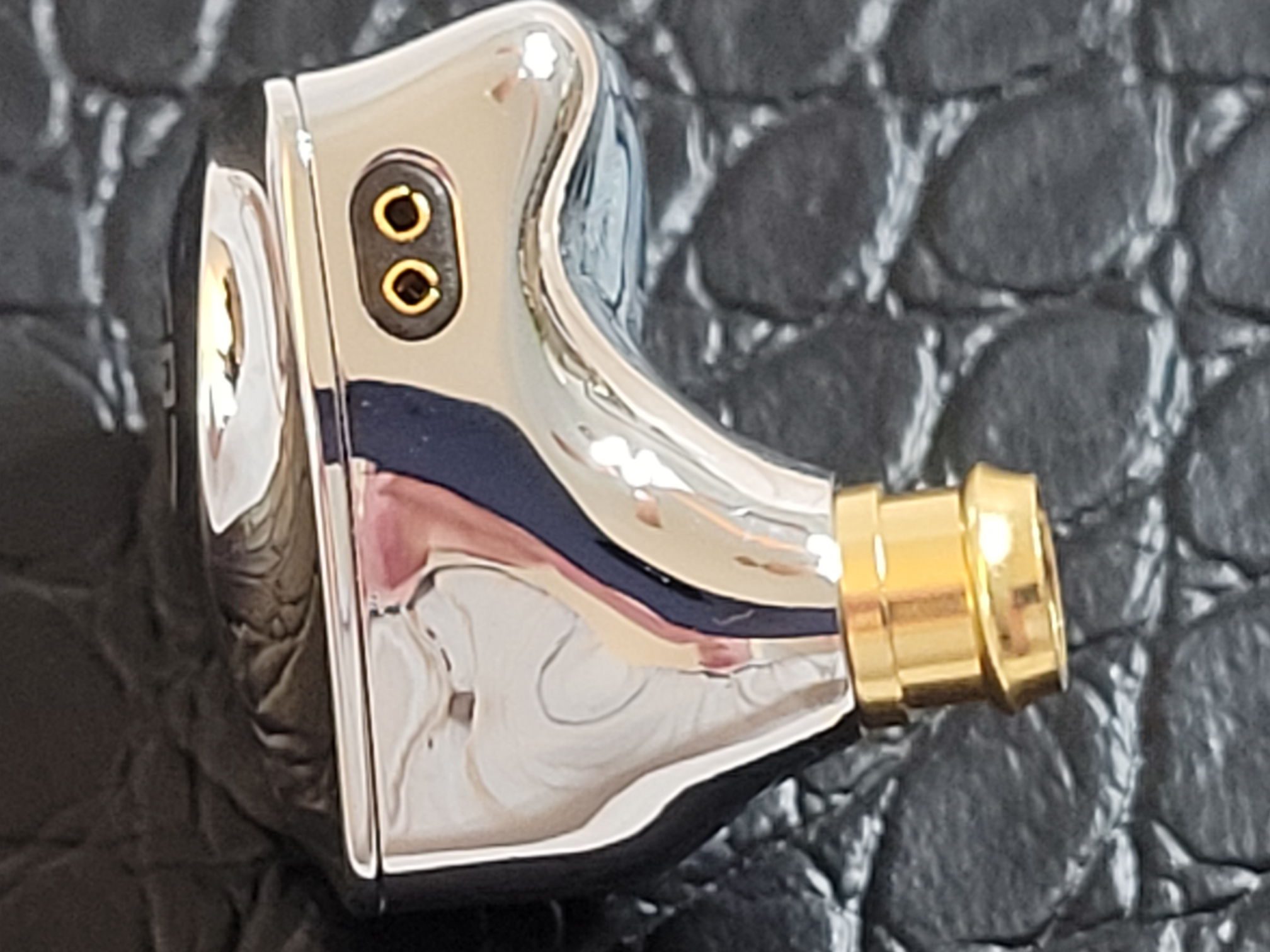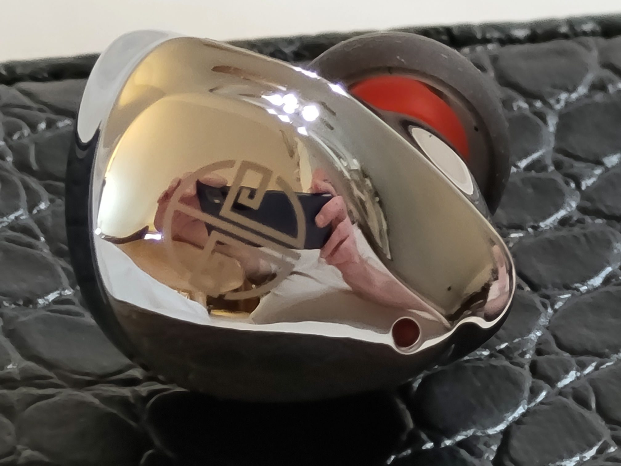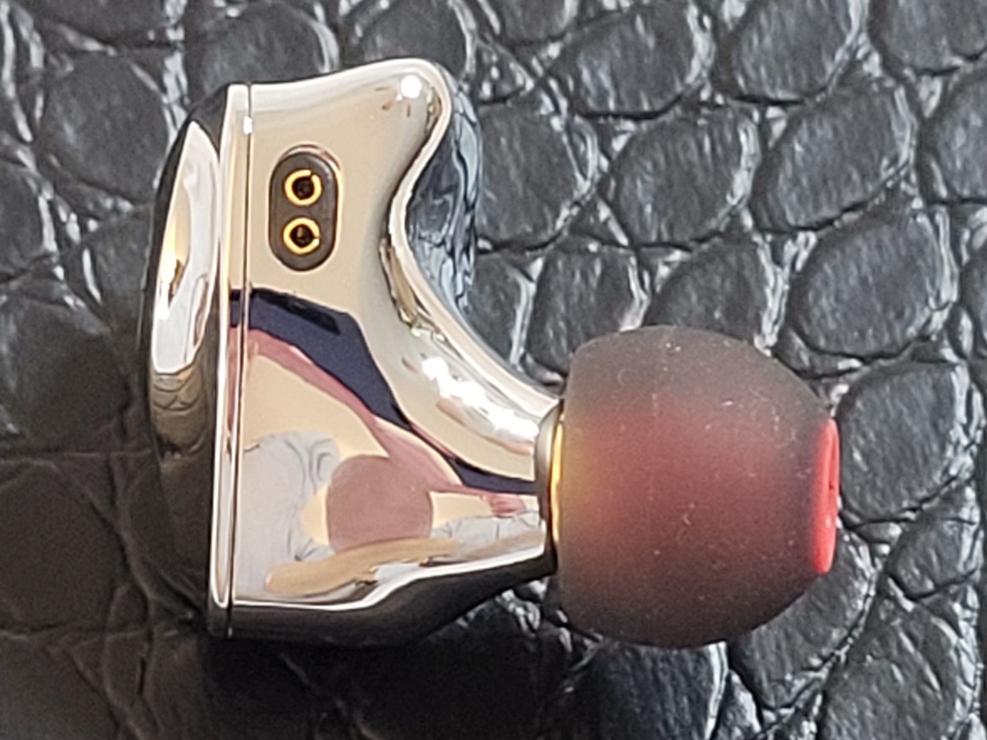 The earpieces are highly polished aluminum shells with a matching faceplate in a semi-custom shape. Size is on the small side and T-force marketing materials suggest a long-term development program using their oem experience and computer aided design to create a shape with long term comfort. I found the design quite comfortable as it sits mostly in the ear and weight is light enough to keep it from being an issue. The aluminum shells should ensure durability and are well polished and fitted with no play or space between metal and connector at the bi-pin. The Nozzles are brass and tightly fitted to the inner shell with a large lip for tip retention and a slight forward and upward rake when inserted in the ear. There are two vents, one on the faceplate immediately opposite the nozzle and the second on the inner surface at approximately the mid-point. Some will find the shells a fingerprint magnet and I did have some difficulty taking pictures without inadvertent self-portraits.