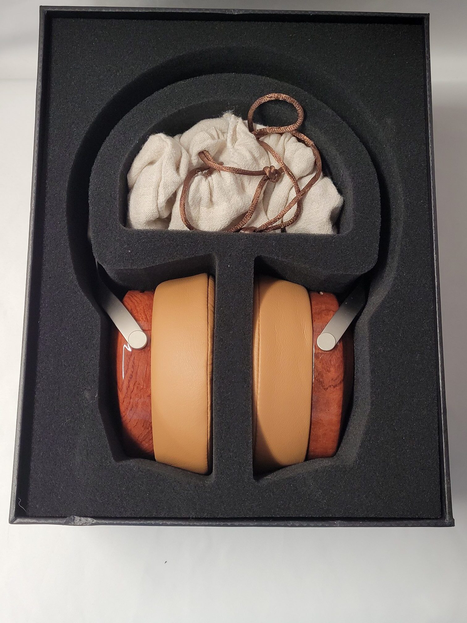 The Robin comes in a black lift top box with a silver line drawing of the headphones on the front and the specs and company info on rear. Lifting the lid reveals the headphones in a foam surround with the cable, carry bag, and 6.35mm adapter housed in a separate compartment in the foam to keep the headphones from getting scratched in transit. The bag is a linen like material but is thin enough that it may not protect the headphones well during travels. The cable is cloth wrapped and uses 2.5mm connectors at the northern ends and a 3.5mm single ended connector at the southern end.