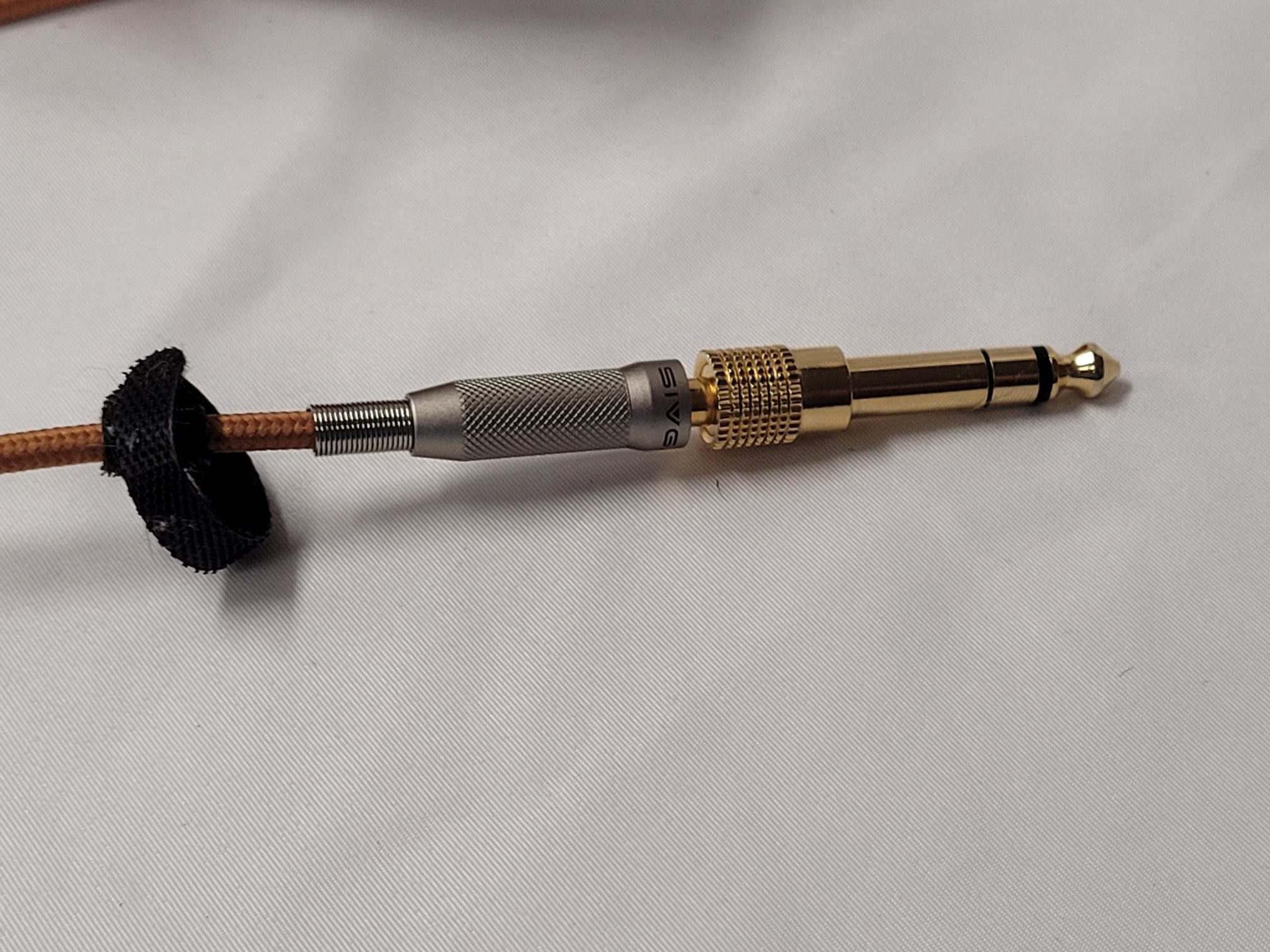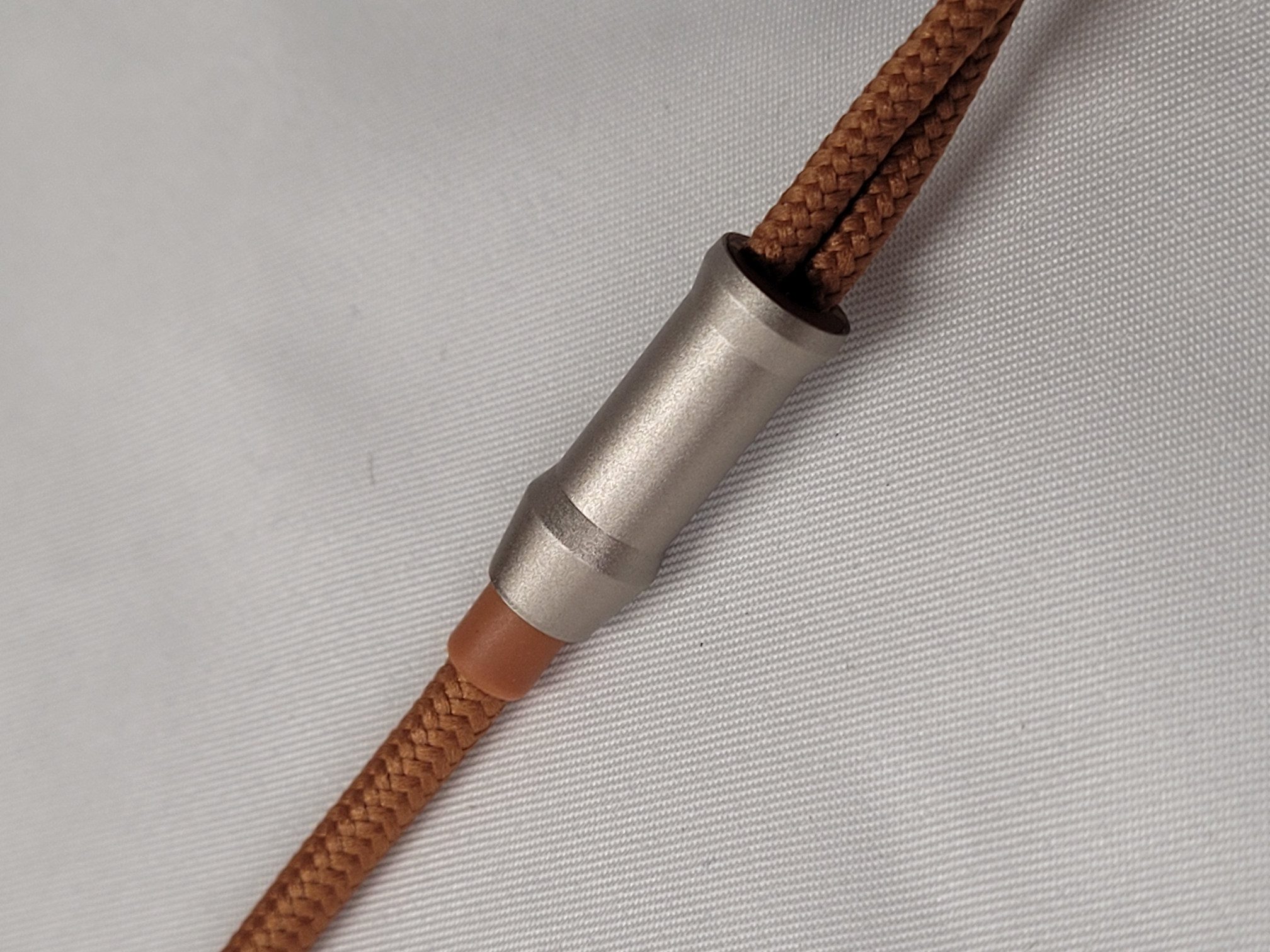 The cable provided with the Robin is cloth covered and color matched to the headphone. Hardware is a straight 3.5mm jack at the lower end with a knurled metal housing and a spring style strain relief before exiting as a single strand. The splitter is a matched to the jack housing as are the upper jack housings. Upper jacks are 2.5mm mono style jacks. The upper jacks are marked L and R on the housings and the headphone has matching designations on the metal tips of the headband. The cable itself is single crystal copper.