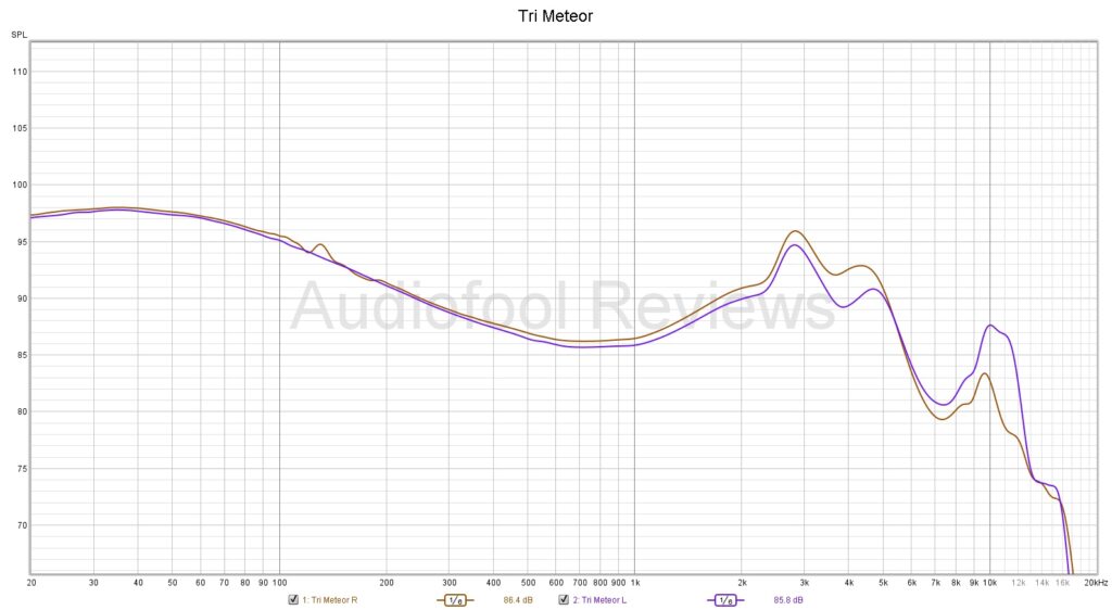 Lower treble drops back again fairly quickly after the upper-mid push and keeps the Meteor from becoming fatiguing. Most of the treble’s energy is at or below the 5kHz mark which gives vocals a nice lift and does help avoid stridency that usually arrives around 9kHz. There is a bit of a bump between 10kHz and 12kHz before rolling off fairly quickly above that (to my ear). It isn’t the most airy treble so don’t expect a ton of sparkle up top as again we see a conservative tuning that does a lot to avoid offending sometimes at the expense of having enough energy to be entirely realistic. Snare rattle is good but cymbals suffer with that lack of energy in the treble range.