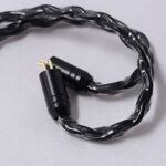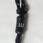 The cable is a standard length (1.2m) cable terminated with a 3.5mm TRS jack in a straight housing with a short strain relief. Color is gloss black for the cable itself and all hardware. The cable itself is listed as 8-core 5N oxygen free copper and is an 8-wire braid from the jack to the splitter and then 4 wire braids from the splitter up to the earhooks. There is a chin-slider in matching matte black finish immediately above the splitter. Termination at the north end is 0.78mm bi-pin connectors with the right marked with red at the pin base.