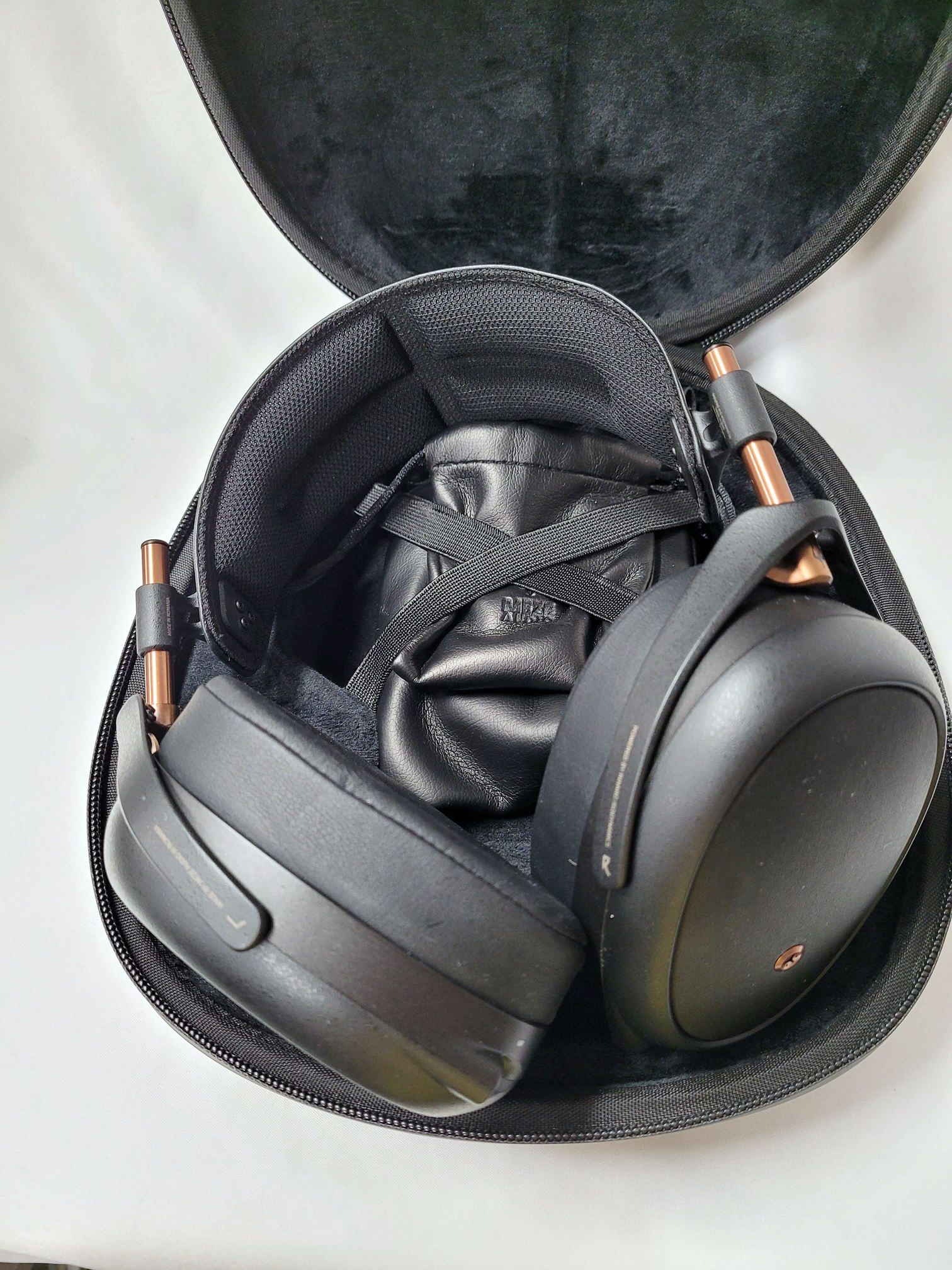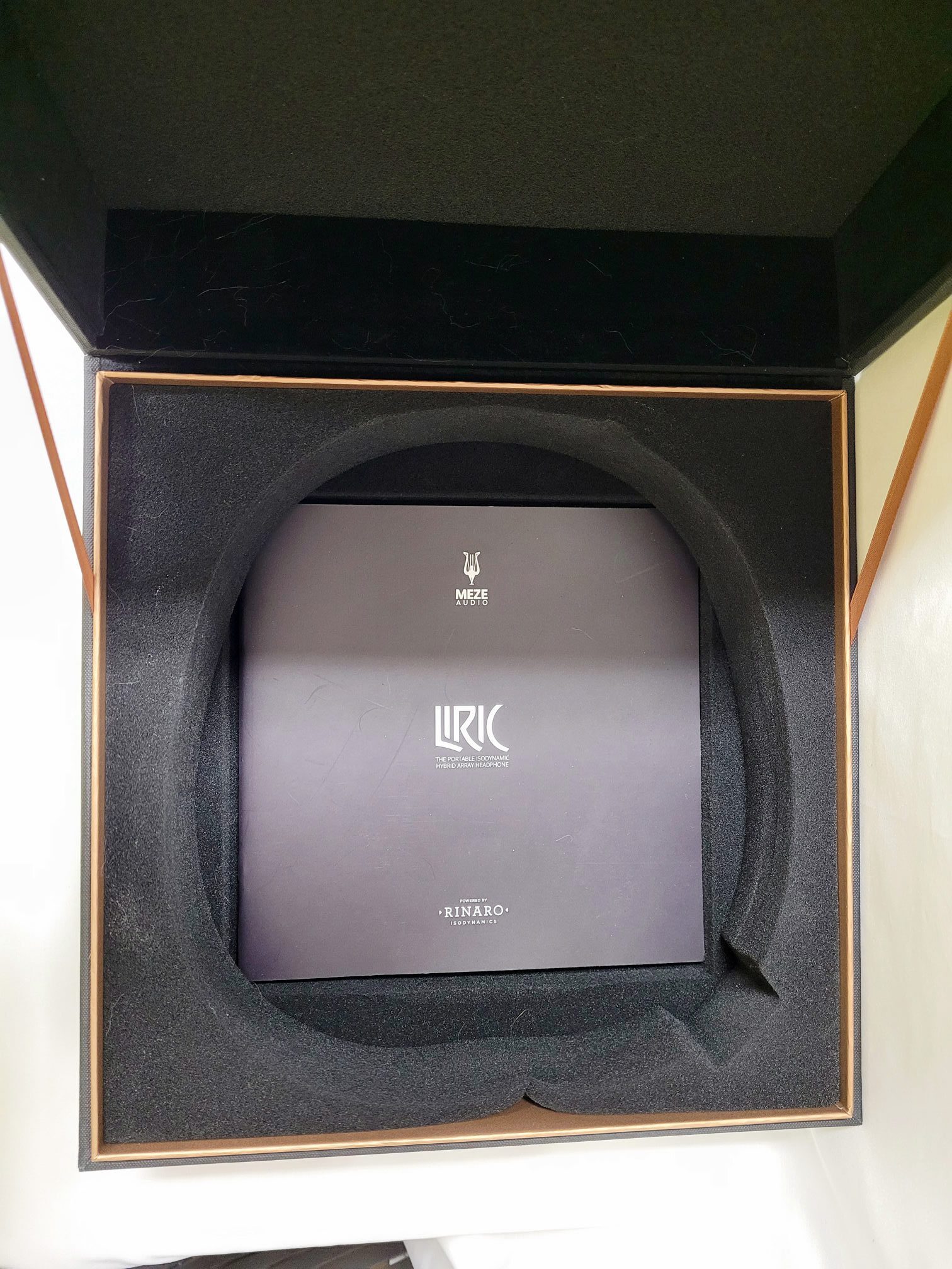 The Liric ships in a presentation case wrapped in a card-stock outer box with the name and Meze Logo and what appear to be the slightly out of focus hands of the conductor guiding his orchestra. The leather presentation case has a gold stylized Liric logo on the lid and matching gold lip on the inner box and thread ties on the sides. It is typically understated and very similar to the Liric itself in that regard. A travel case protects the headphones inside the presentation case and the provided cables and adapters fit inside yet another leatherette bag inside the soft case so there is no metal on metal contact anywhere in the package. It is well thought out and well made to protect the investment these represent. The review sample came with the 2 standard cables (short and long 6.35/3.5mm) and an optional upgrade 4.4mm braided cable to complete the kit.
