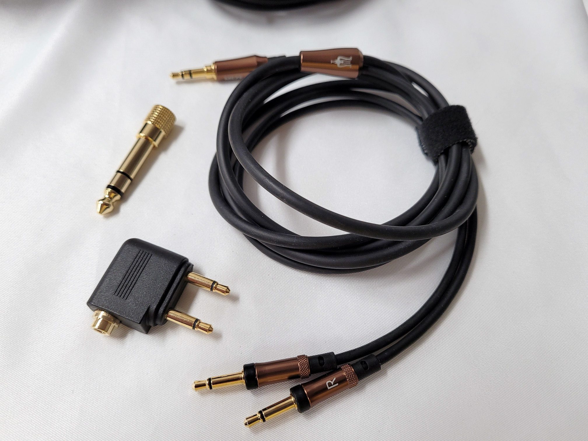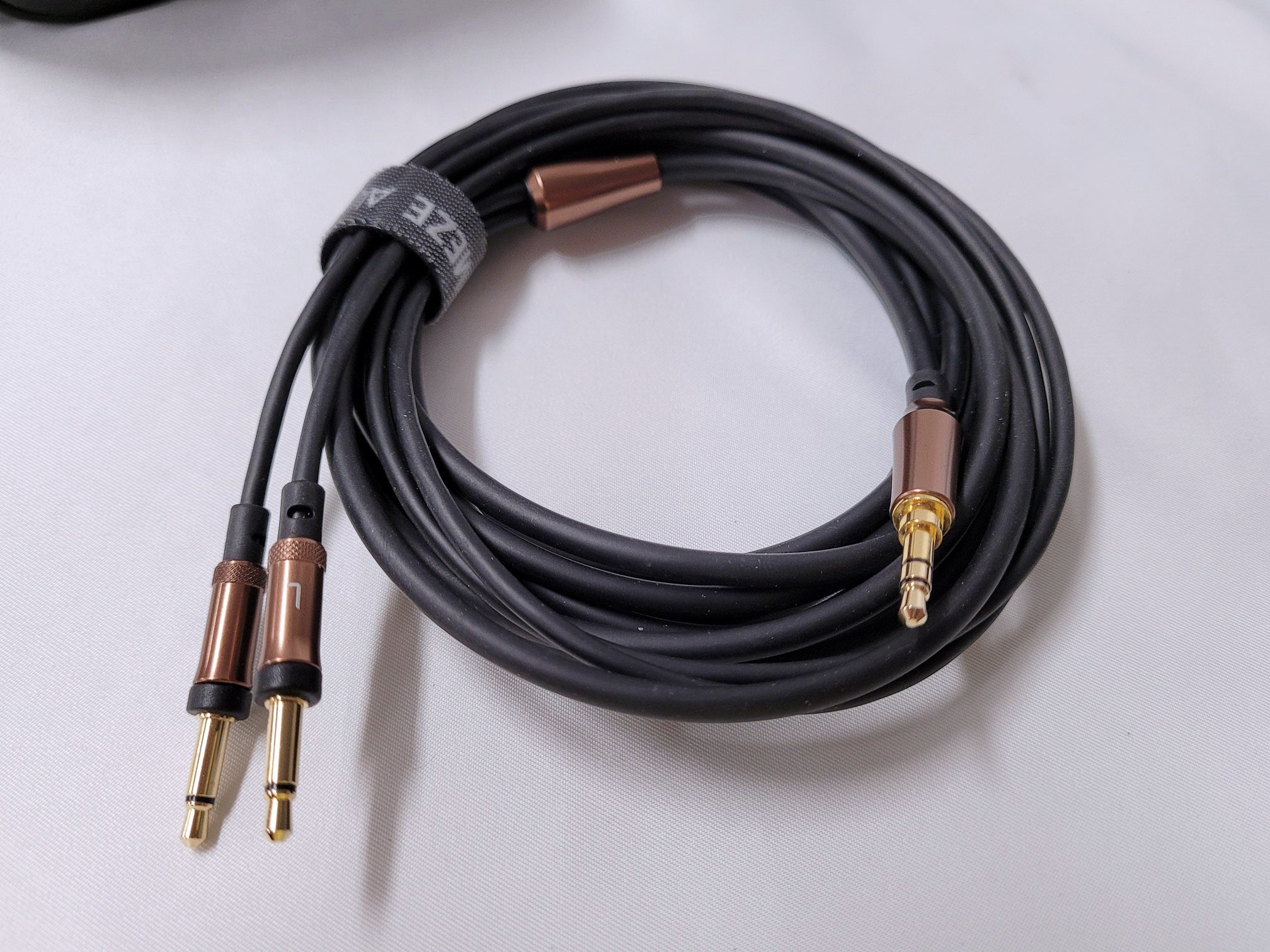 The base kit comes with two included cables of 1.5m and 3m length respectively. other than length, the two are exactly alike with a rubber jacket and copper/bronze jack, splitter, and connector housings that match the vent on the outer cup and the aluminum rods used for vertical adjustment. The black and copper aesthetic is carried through the package from the case to the cables to the ear-cups giving it a very consistent look. The provided cables aren’t fancy and some will suggest they are not of equal grade as the headphone but they were sturdy enough for daily use, easily replaced (in a nod to what daily use does to cables over time) and replacements are reasonably priced as low as $30 on Meze website. I think based on the anticipated use patterns providing 2 cables with decent strain reliefs, good build quality, and easy replacement trumps exotic materials and having to treat it more gingerly when discussing a road warrior. There is an upgrade option that is a braided 4.4mm cable that was provided with silver plated copper in Litz braid up to the splitter and then a two wire twist to the 3.5mm mono jacks at the north end. Even here, the price is kept reasonable with a list of $129 and options for 3.5, 2.5, or 4.4mm termination at that price.