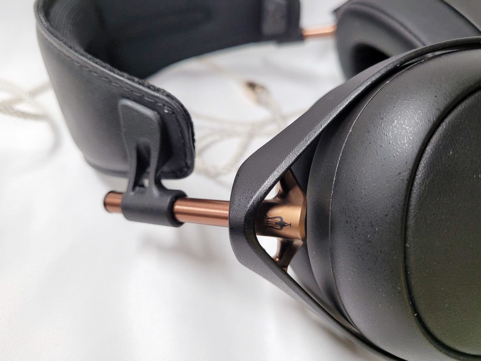 The outer face of the cup has a leather outer cover and a single copper colored vent port that Meze refers to as the pressure equalization system. the vent is tuned specifically to maintain a certain chamber pressure inside the unit while preventing fatigue caused by lack of venting. Each cup has a 3.5mm jack allowing for easy swapping of cables with both a short travel cable and a longer home cable provided in the kit and a number of upgrade and after market options available. I used a custom 3.5mm to XLR cable in my collection for some of my listening in addition to the factory provided cables.
