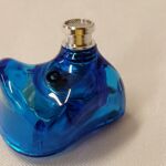 Construction is largely transparent plastic with a brass pin at the bottom of the face plate and an aluminum nozzle. My sample is in electric blue but a more subdued version in a gray/black color is also available if the blue is a bit too loud for some. The materials used are impact resistant and give the DB1 a nice solid feel despite the mostly plastic build. The shape is a small-mid sized inverted teardrop and fit should be fairly comfortable for all but the smallest ears. Nozzles have a slight forward rake when set in the ear but with most of the earpiece sitting behind rather than over the ear-canal isolation is somewhat limited. Nozzles have a large lip for tip retention and use standard sized tips so if the three sizes provided are not a good match others should be readily available. Connectors are the popular raised bi-pin style and are well mated to the shells.
