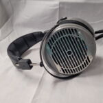 The build is quite interesting as it borrows from some of the best designs with the headband design and adjustments looking suspiciously like an Audeze headband. The gimbals are simple but well made and there is little to no plastic anywhere to be found. What is most unique about the design is the resin-cast aluminum cups with polished aluminum outer grills. You’d be forgiven for thinking it was 3d printed as at first glance it does look like it could be but the epoxy impregnated with aluminum powder is much stronger without adding much additional weight. Connections are 3.5mm ports at the bottom of each cup. On the beta, they are pointed straight downward. The provided cable is cloth (nylon wrapped) and should prove as durable as the headphone itself. Comfort is quite good as the headband is well padded as are the Dekoni velour pads. This combined with moderate weight and mild clamping force make for a headphone that can be worn for extended periods without fatigue.