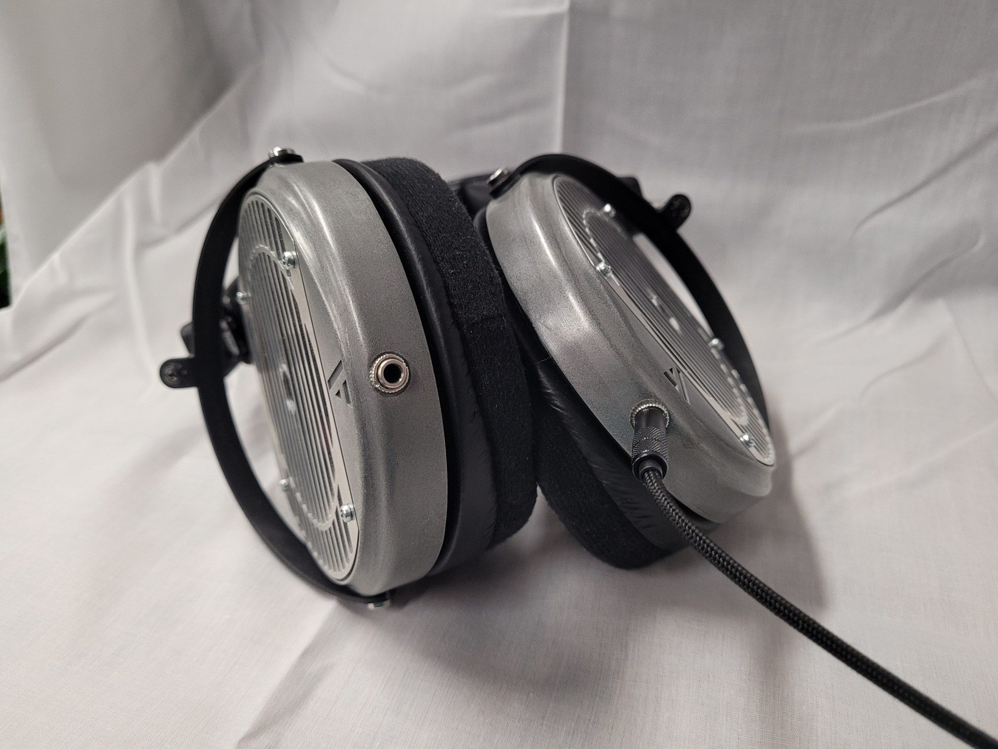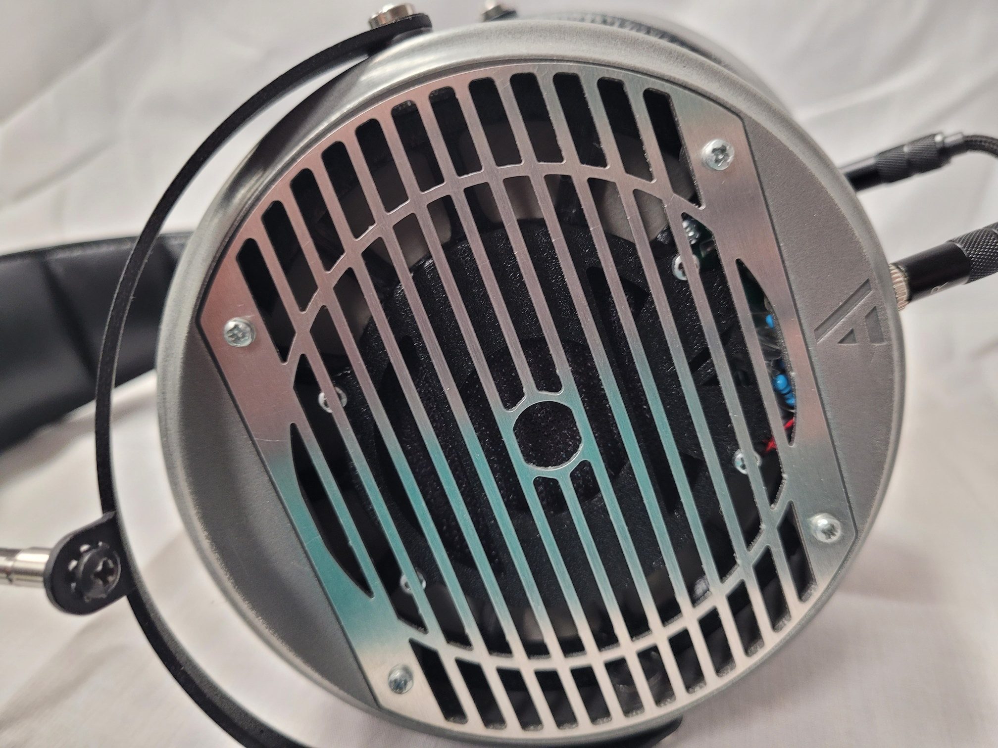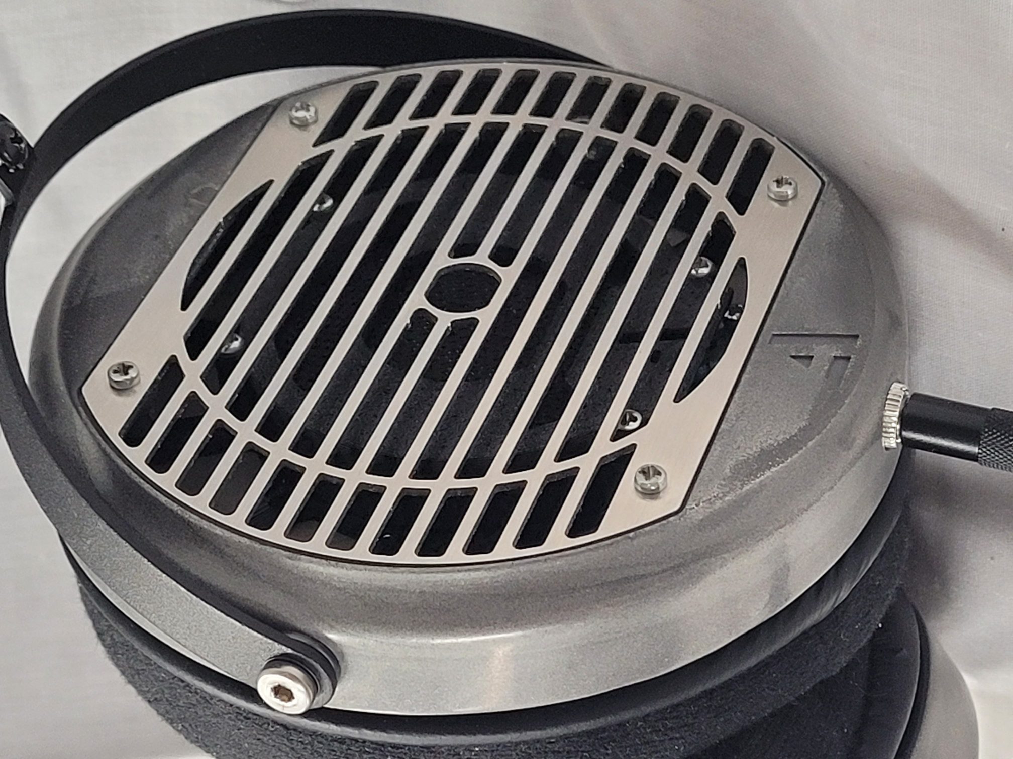 The build is quite interesting as it borrows from some of the best designs with the headband design and adjustments looking suspiciously like an Audeze headband. The gimbals are simple but well made and there is little to no plastic anywhere to be found. What is most unique about the design is the resin-cast aluminum cups with polished aluminum outer grills. You’d be forgiven for thinking it was 3d printed as at first glance it does look like it could be but the epoxy impregnated with aluminum powder is much stronger without adding much additional weight. Connections are 3.5mm ports at the bottom of each cup. On the beta, they are pointed straight downward. The provided cable is cloth (nylon wrapped) and should prove as durable as the headphone itself. Comfort is quite good as the headband is well padded as are the Dekoni velour pads. This combined with moderate weight and mild clamping force make for a headphone that can be worn for extended periods without fatigue.