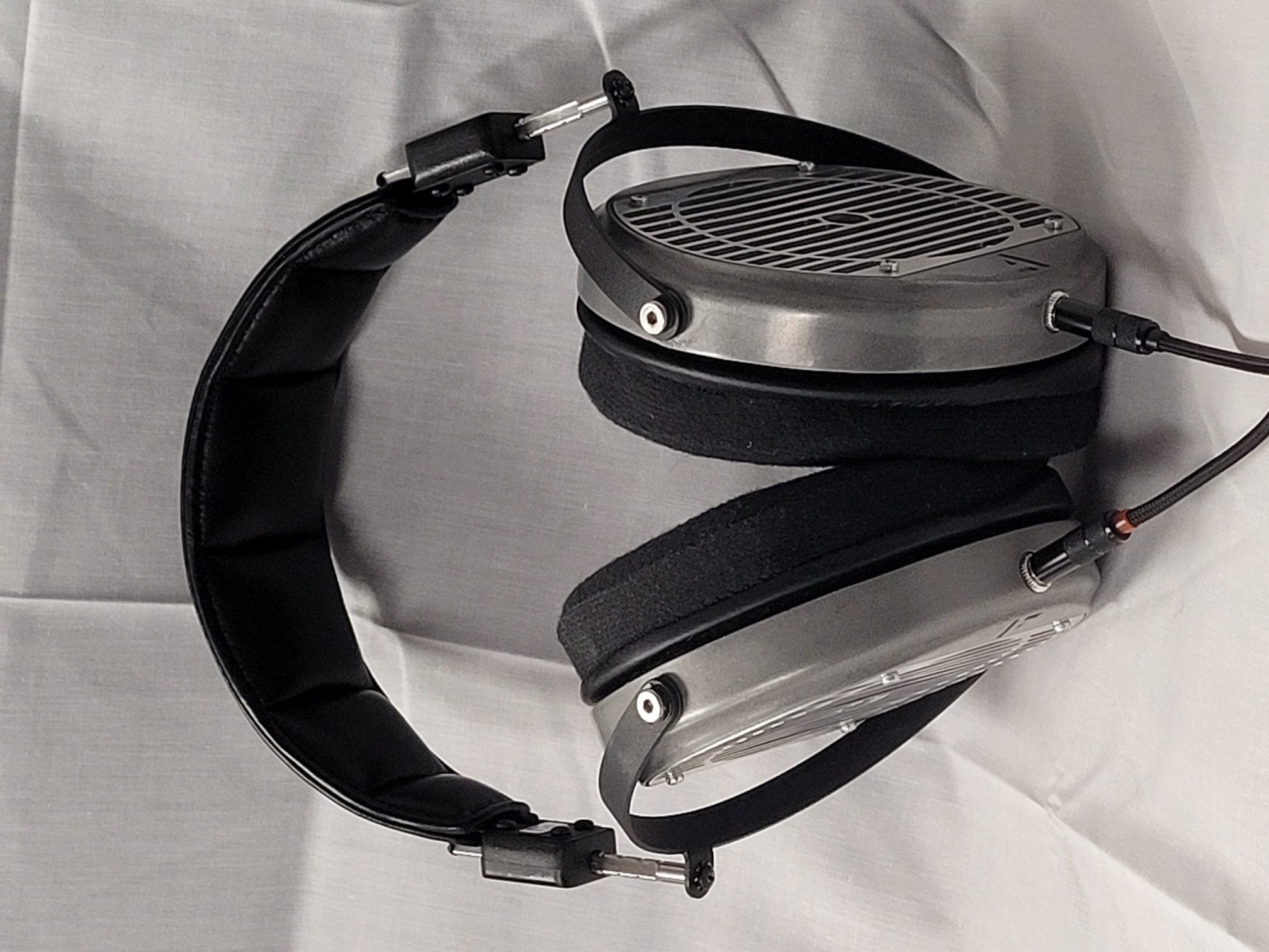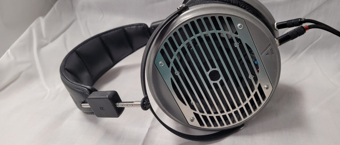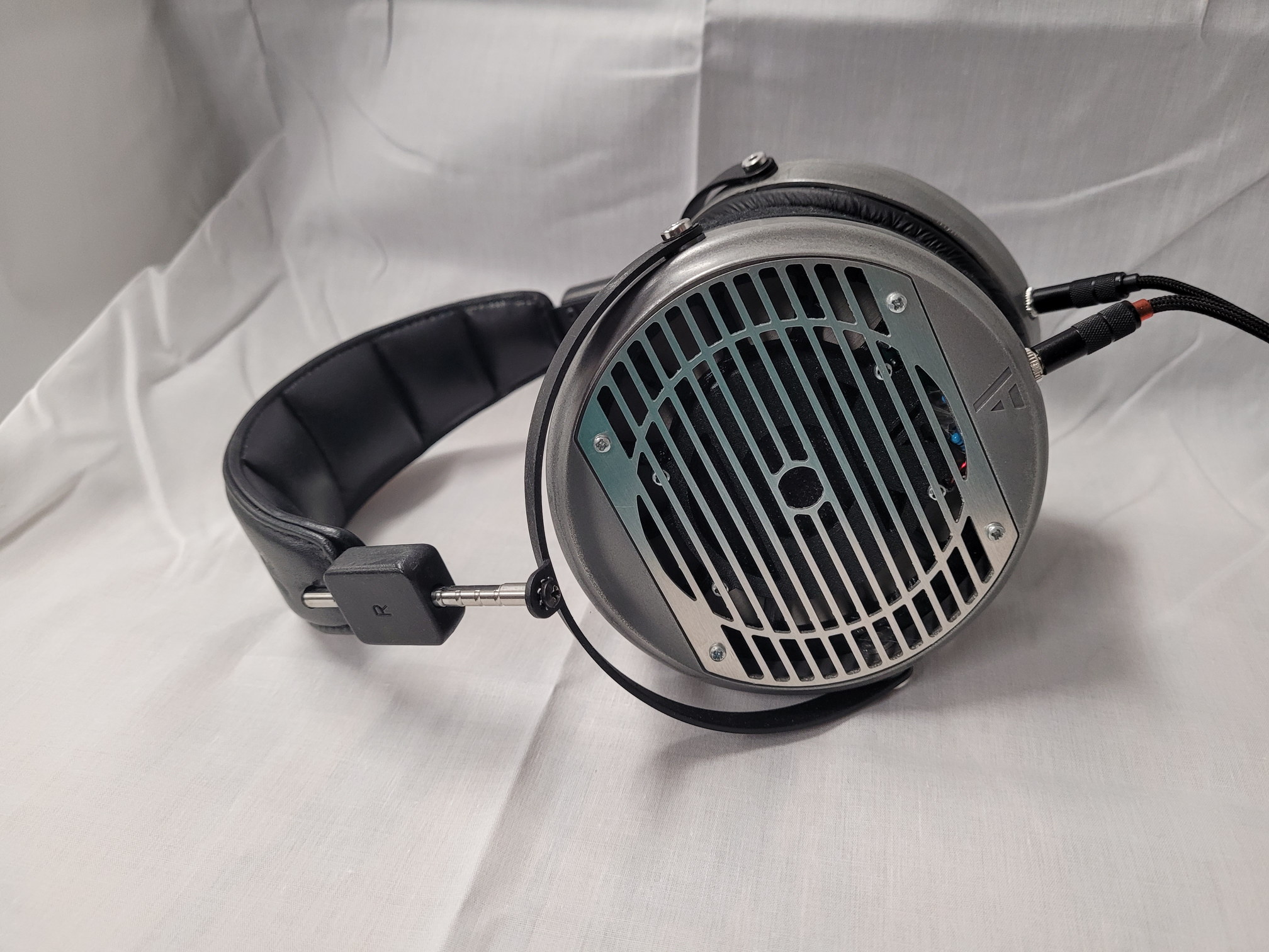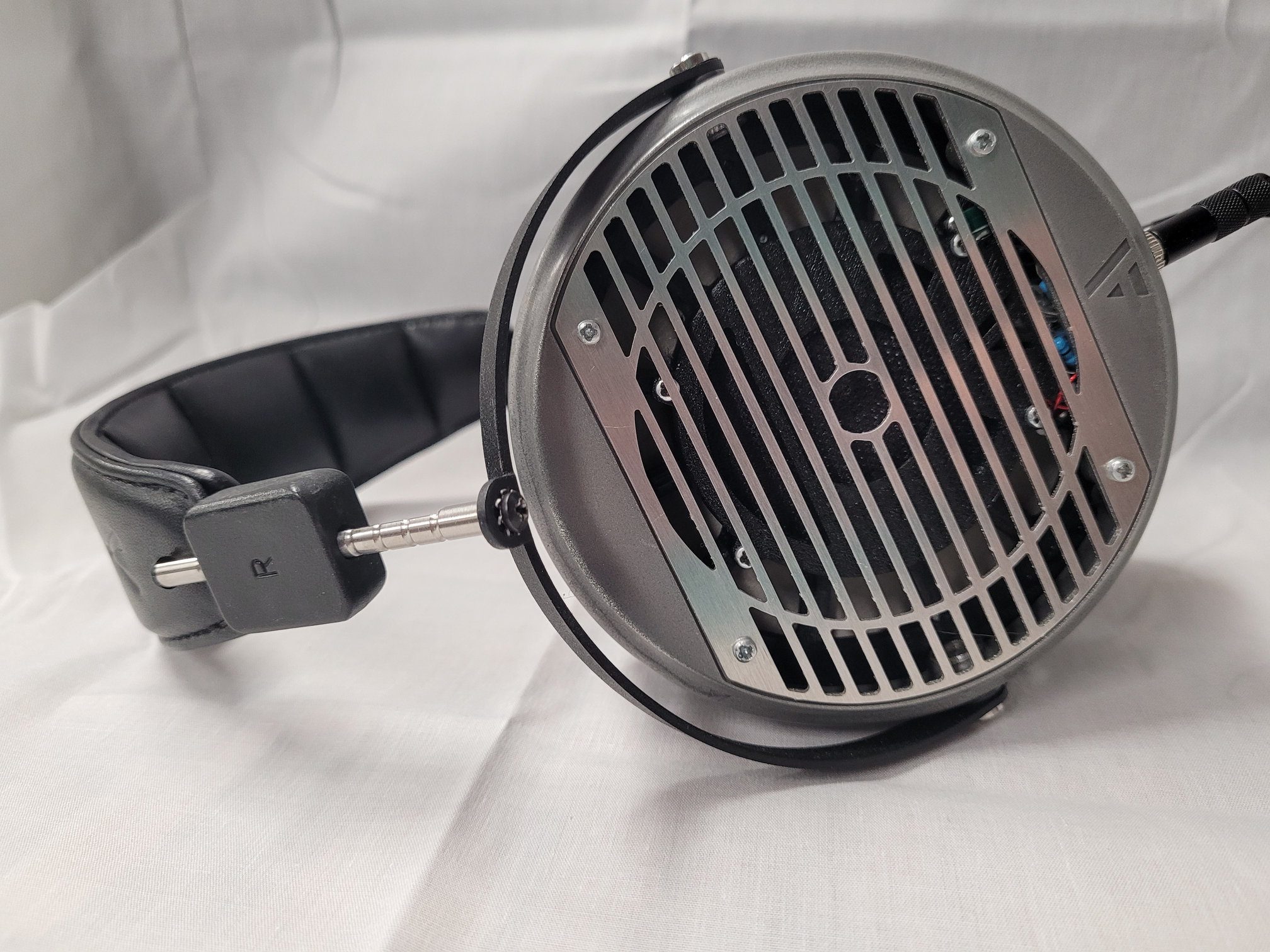 The build is quite interesting as it borrows from some of the best designs with the headband design and adjustments looking suspiciously like an Audeze headband. The gimbals are simple but well made and there is little to no plastic anywhere to be found. What is most unique about the design is the resin-cast aluminum cups with polished aluminum outer grills. You’d be forgiven for thinking it was 3d printed as at first glance it does look like it could be but the epoxy impregnated with aluminum powder is much stronger without adding much additional weight. Connections are 3.5mm ports at the bottom of each cup. On the beta, they are pointed straight downward. The provided cable is cloth (nylon wrapped) and should prove as durable as the headphone itself. Comfort is quite good as the headband is well padded as are the Dekoni velour pads. This combined with moderate weight and mild clamping force make for a headphone that can be worn for extended periods without fatigue.