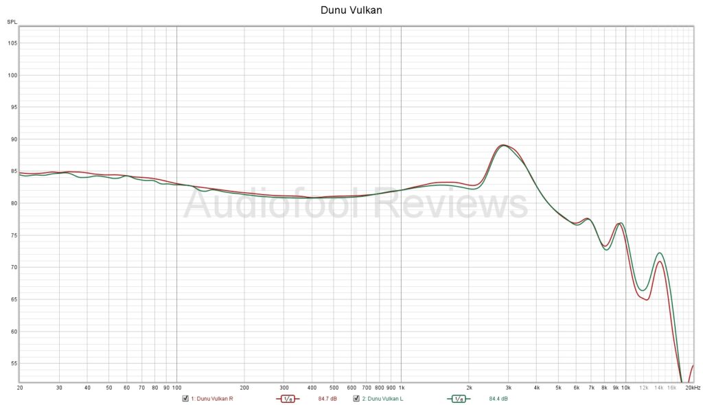 Somewhat amazingly, the boosted bass does not bleed or obstruct the lower mids. I’m used to big bass meaning there is almost nothing left of the lower mids as a result, but the Vulkan has good quality lower mids in-spite of the big bass. Lower vocals stand in front of the instrumentation and depending on the recording can be a bit harsh sounding. Guitar has good rasp and growl as transients are clean and quick. Violins benefit from the pronounced lift in the upper-mids and lower-treble and have good tonality. Not every instrument benefits from the big lift though as piano can sound a bit tinny in its upper range. Upper vocals stand distinctly forward of the instrumentation and again can become harsh and even a touch sibilant if the track leans that way already.